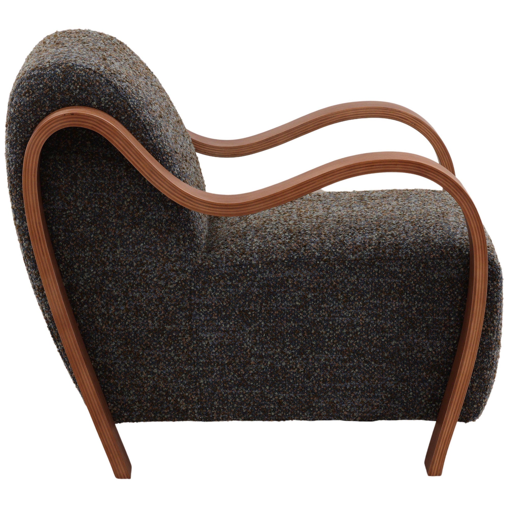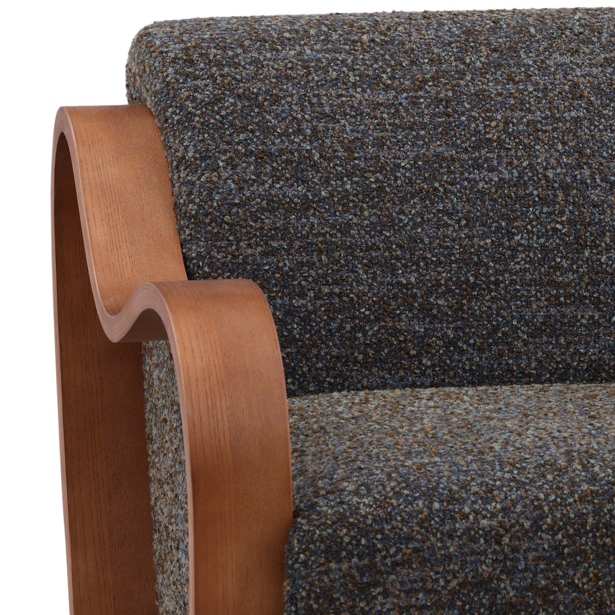 The Amabel Chair blends soft boucle texture with a sculptural oak wood base, creating a modern yet inviting silhouette. Its plush cushioning and gently curved form provide both comfort and elegance, making it an ideal accent for any living space or reading nook.