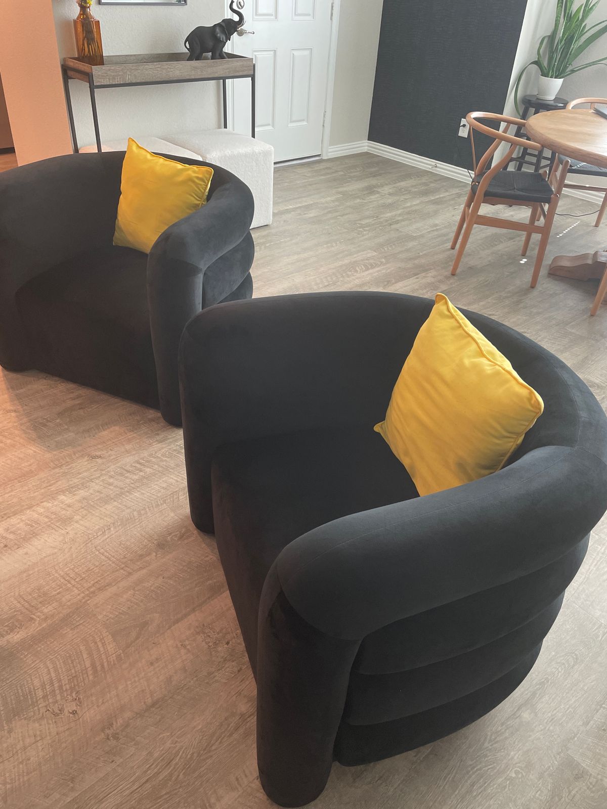They are as comfortable as they are beautiful and they look great in my space. A swivel is the only thing that would make it better but I can live without that. They delivered faster than I originally expected which was great for me, and the cost from HFH was better than other sellers.