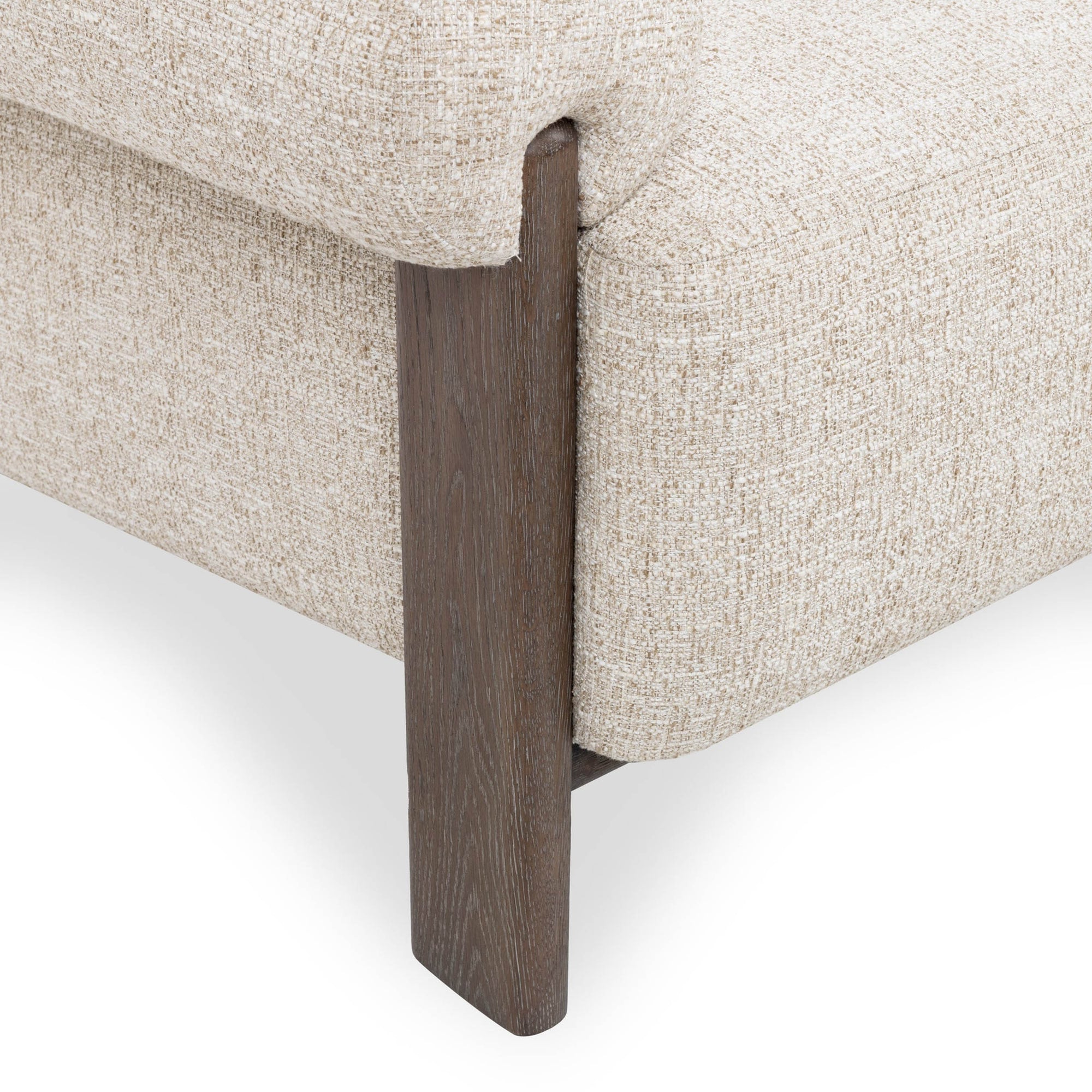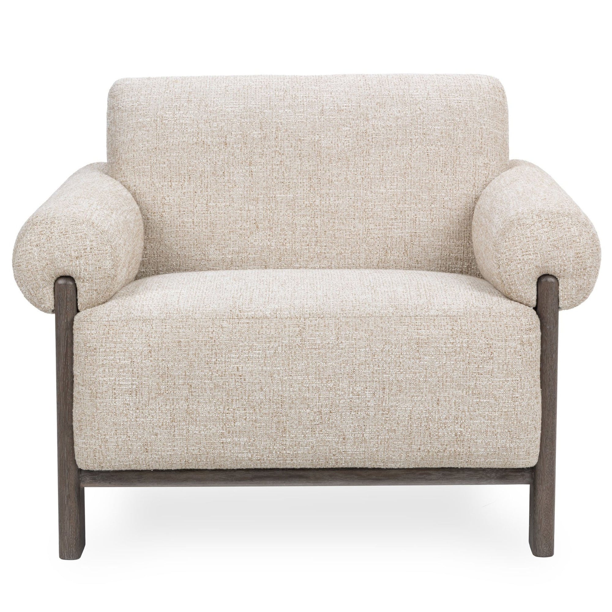 The Malia Accent Chair offers comfort and style with a modern club silhouette. Crafted from soft fabric with solid wood and wood veneer paneling, the plush seat and bold, sculptural arms offer modern appeal. The exposed wood base adds a refined touch, making this a perfect statement piece for any living space.