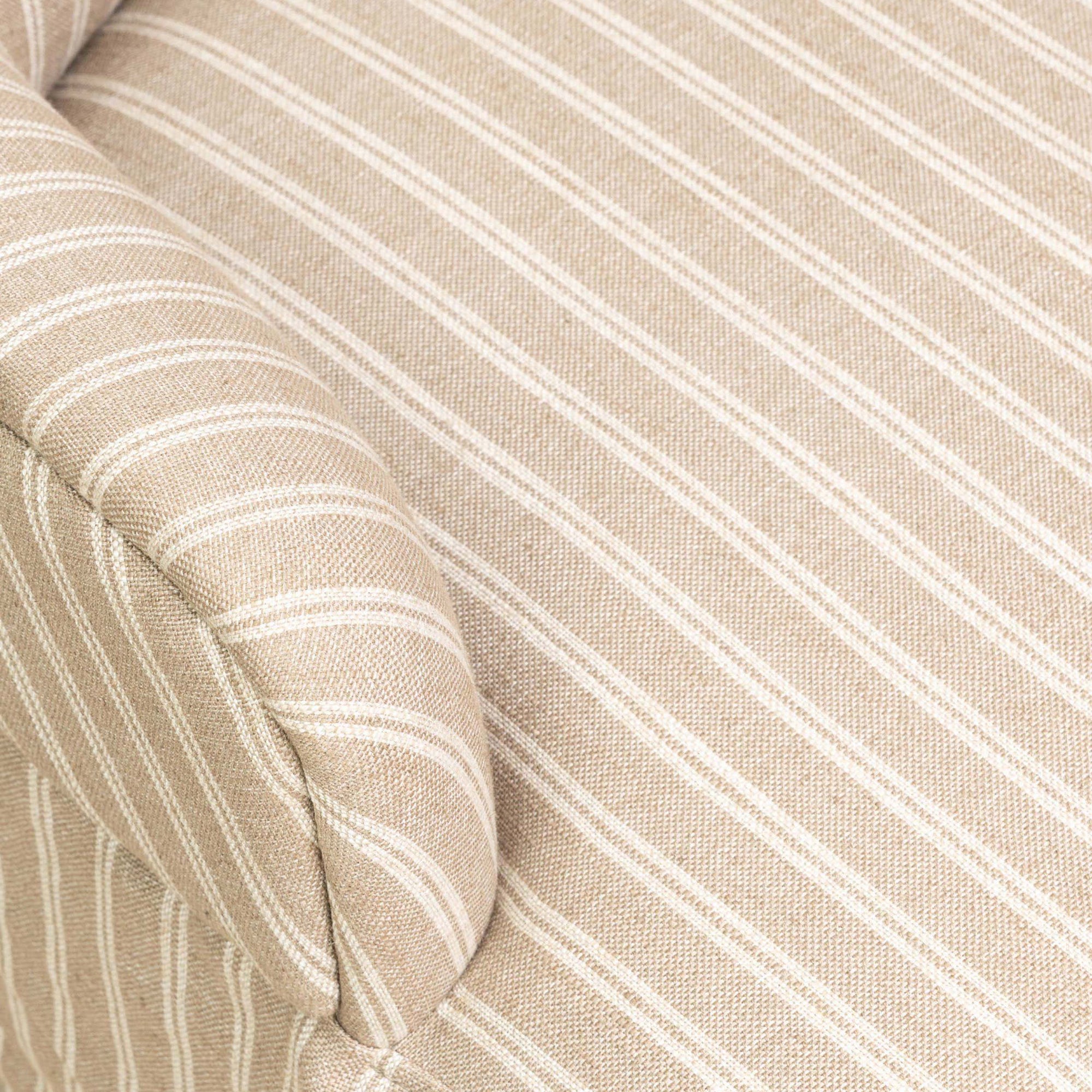 The Omar Chair combines classic design with comfort, featuring a solid oak frame with mortise and tenon joinery and S-spring seat construction. Upholstered in a durable blend of viscose, polyester, and flax/linen, it offers supportive cushioning and subtle sophistication for living spaces or offices.