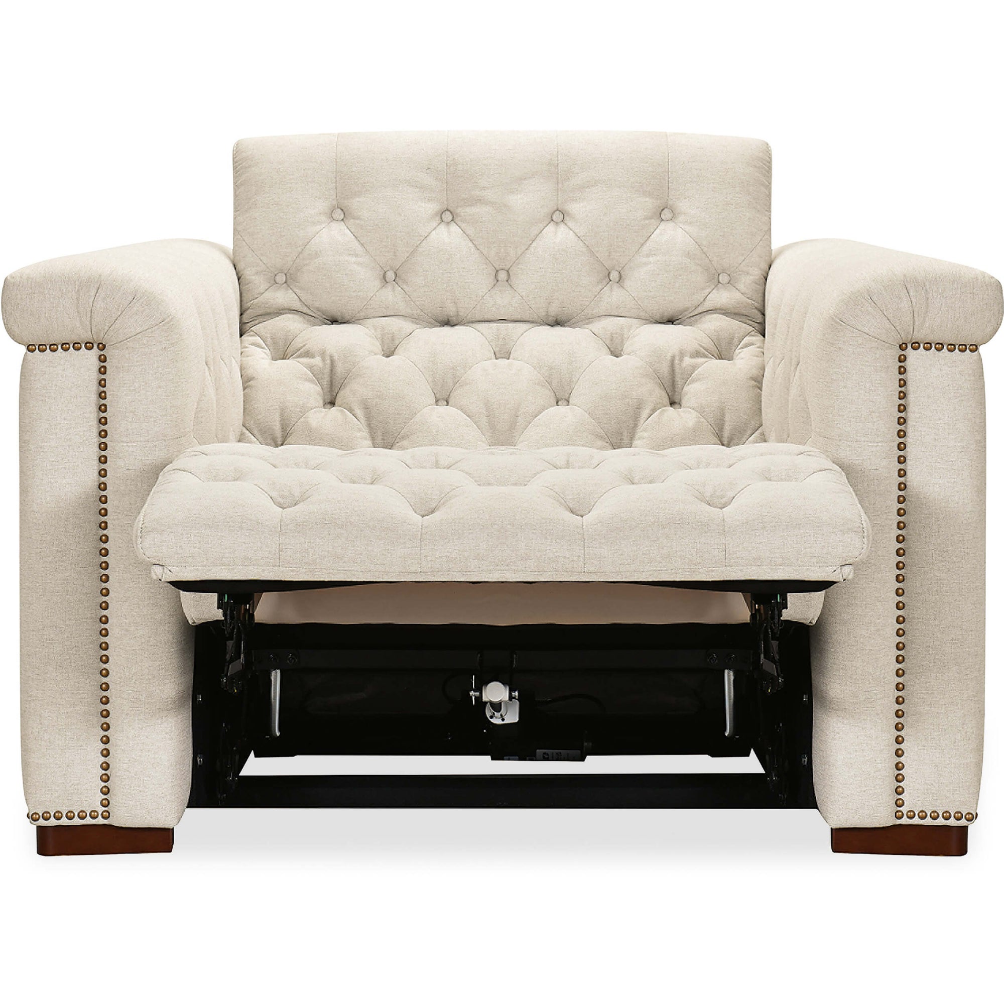 • Discreetly concealed synchronized power recline function