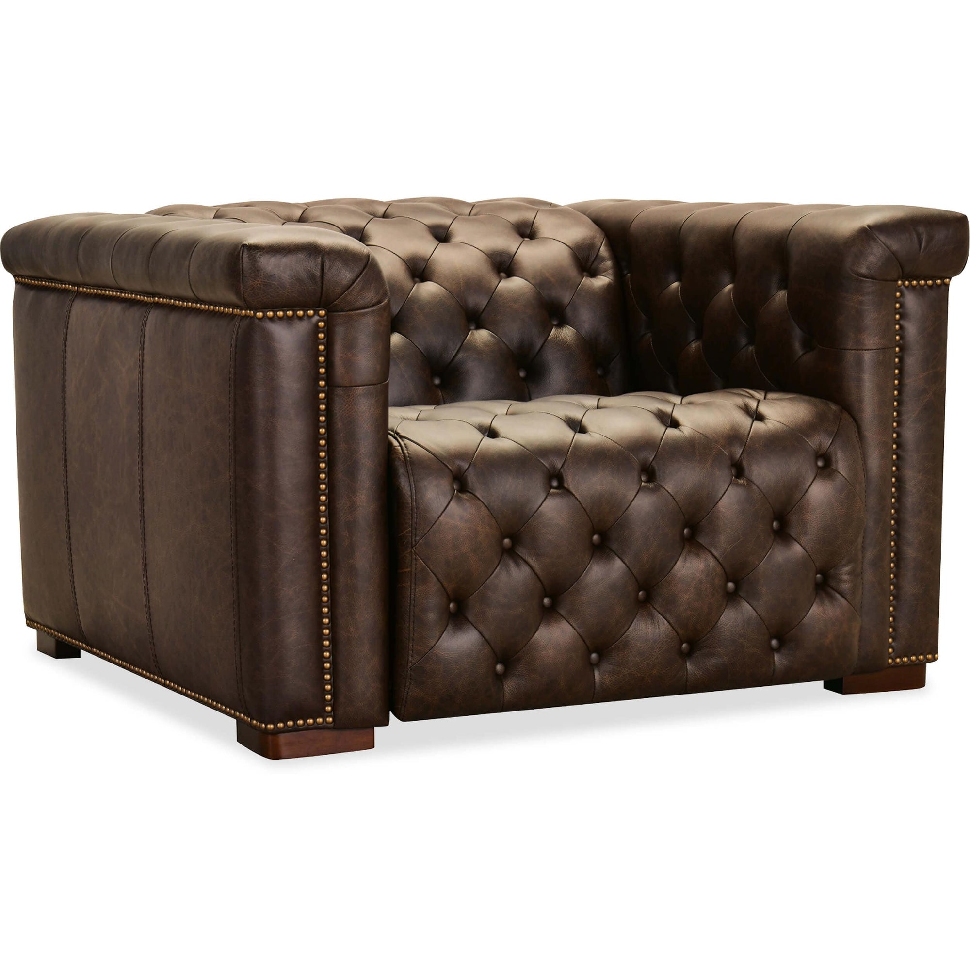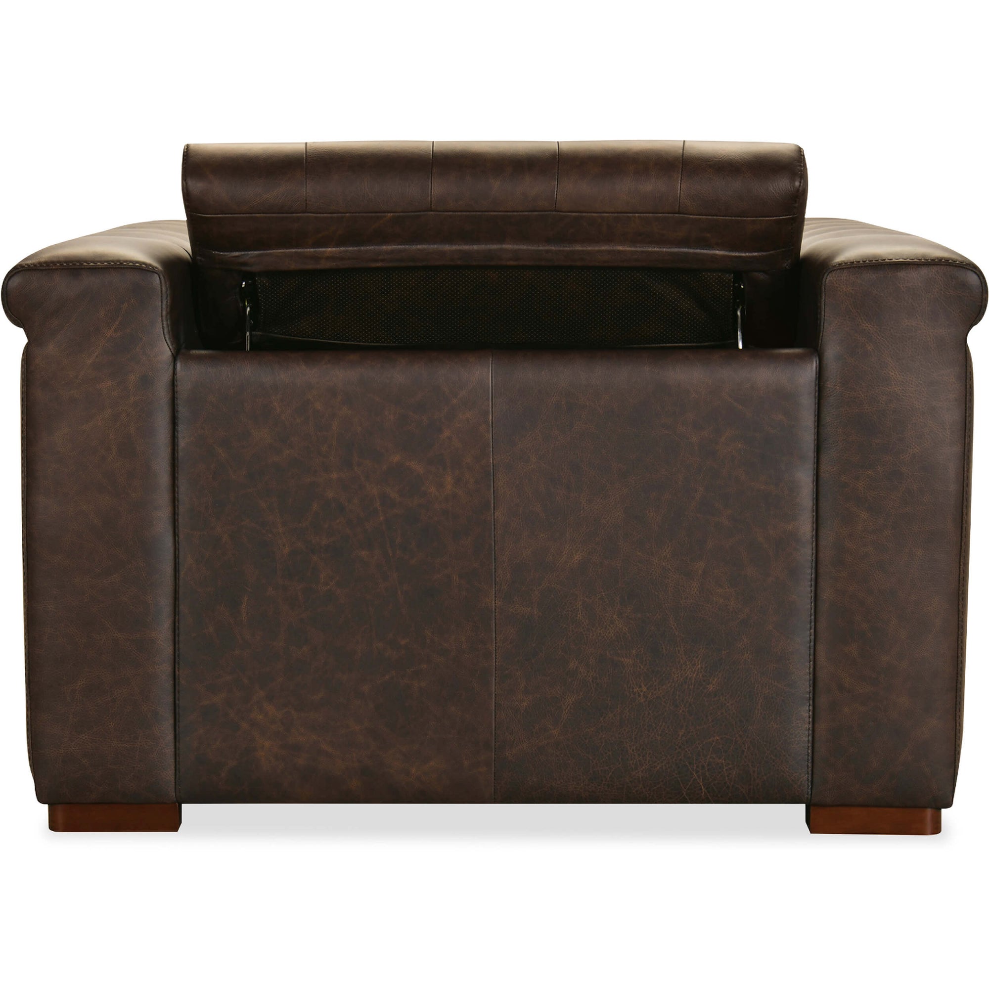 The Savion Power Motion Leather Chair offers luxurious comfort with a power headrest and power recline functionality. Upholstered in rich West Saddlewood Top Grain leather, it features classic chesterfield tufting and copper-toned nail trim for an elegant touch. The dark wood finish enhances its timeless design, while the modern reclining technology seamlessly integrates for a discreet, sophisticated look. Perfect for those seeking both style and comfort in their living space.