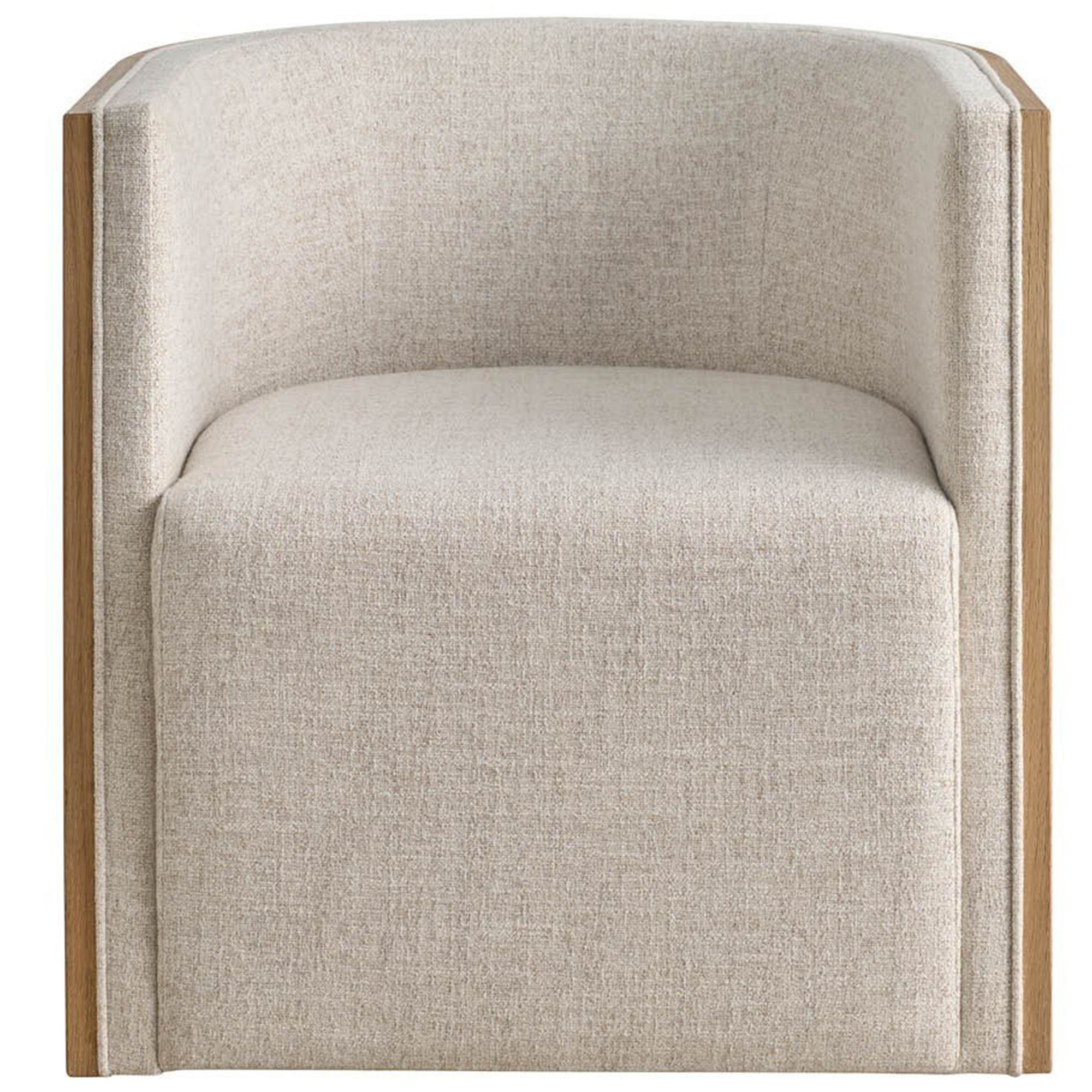 The Tanner Swivel Chair blends relaxed sophistication with everyday comfort. Its tailored silhouette, gently curved back, and smooth 360-degree swivel create a versatile seat for living rooms, bedrooms, or reading corners. Upholstered in soft, durable linen-textured fabric over plush cushioning, the chair rests on a refined Skylark-finished white oak base that adds subtle warmth. Designed for effortless lounging and modern functionality, the Tanner brings timeless style to any space.