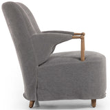 A design collaboration by Amber Lewis and Four Hands. The Brently Chair offers a fresh take on the classic slipcovered design. A fixed linen-blend slipcover drapes seamlessly over a sloping silhouette, flowing into a skirted base for an elegant touch. Burnt oak wood arms and feet add warmth and contrast, while the S-spring seat ensures lasting comfort.