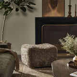 A design collaboration by Amber Lewis and Four Hands. The Oslo Ottoman features a subtle sweetheart shape, upholstered in beige shearling that enhances its found-object appeal. S-spring suspension provides a comfortable seat, while the shearling fabric adds depth and vintage charm. Whether styled alone or as part of a set, this ottoman brings character and drama to any space.