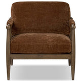 A design collaboration by Amber Lewis and Four Hands. The Warren Chair blends classic design with a contemporary touch. Framed in vintage oak, it features tapered legs, spindle detailing along the arms, and charming bauble accents. Upholstered in buttery smooth fabric rich in character, this accent chair offers both style and comfort, making it a refined addition to any space.