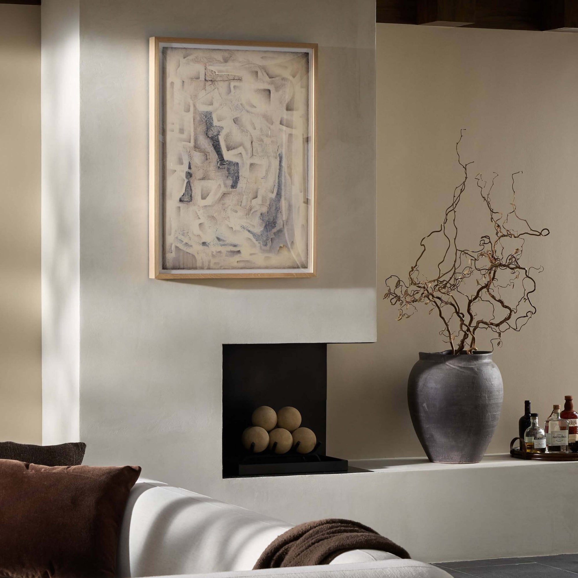 Material Detail Vertical Grain White Oak, Textured Fine Art Paper, Acrylic Glazing