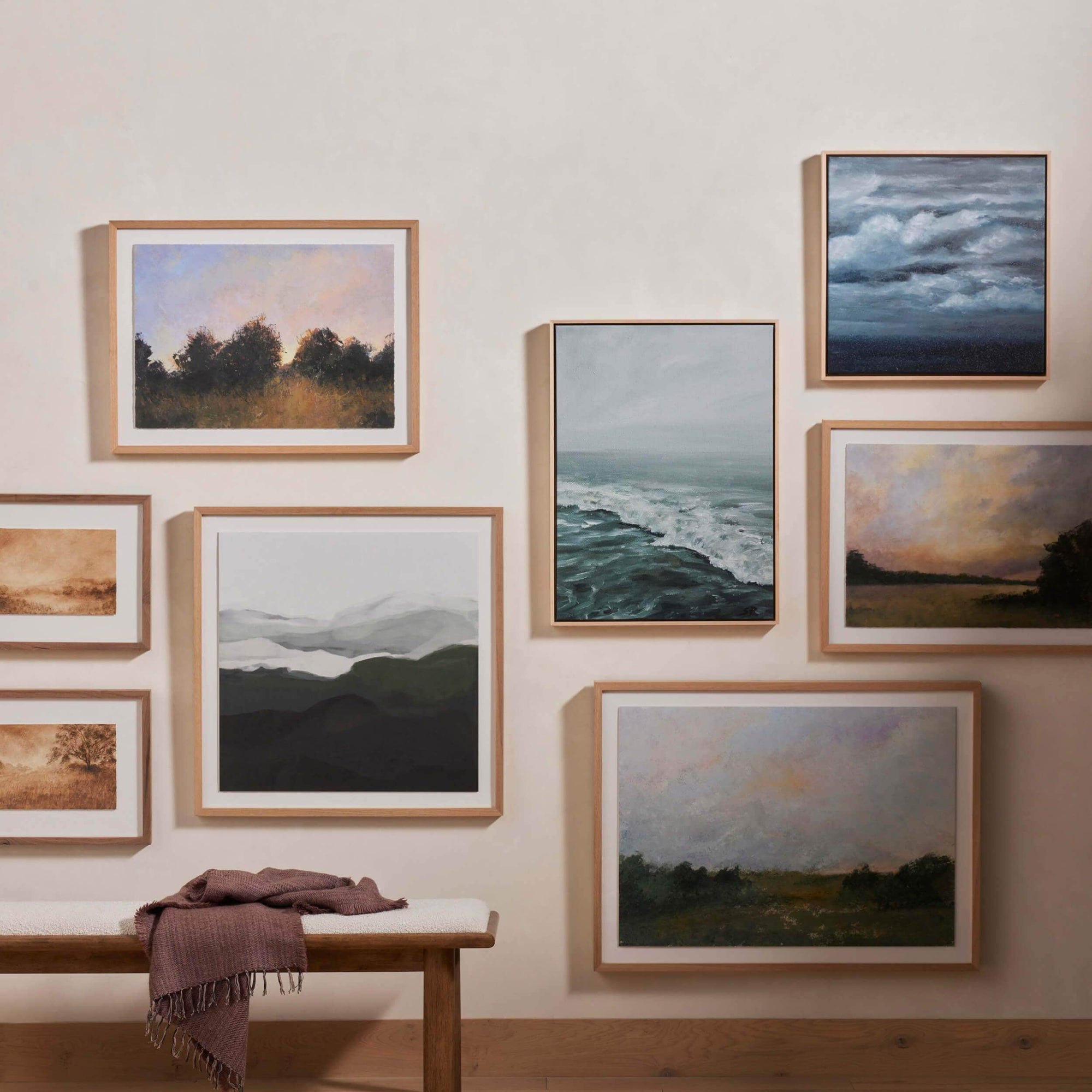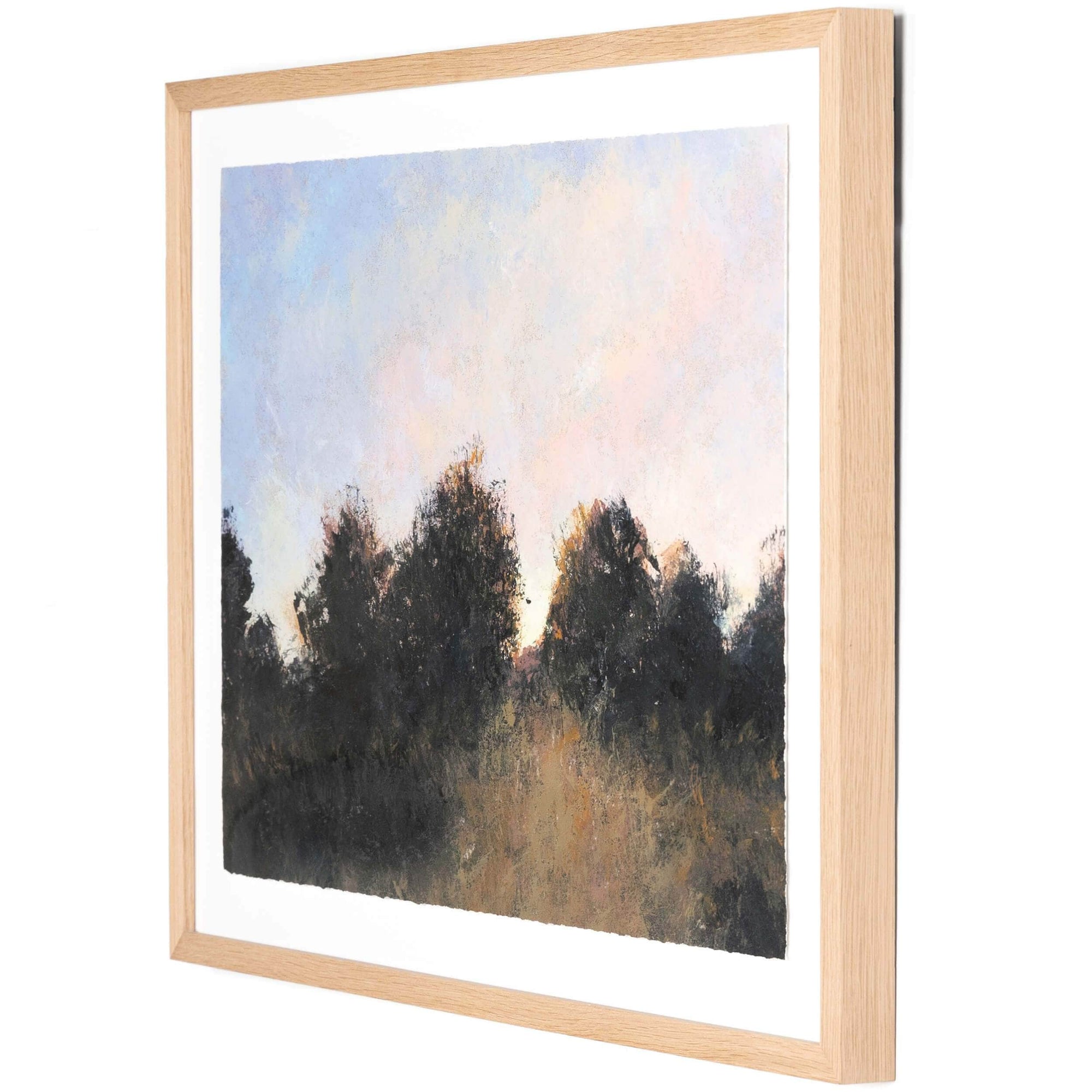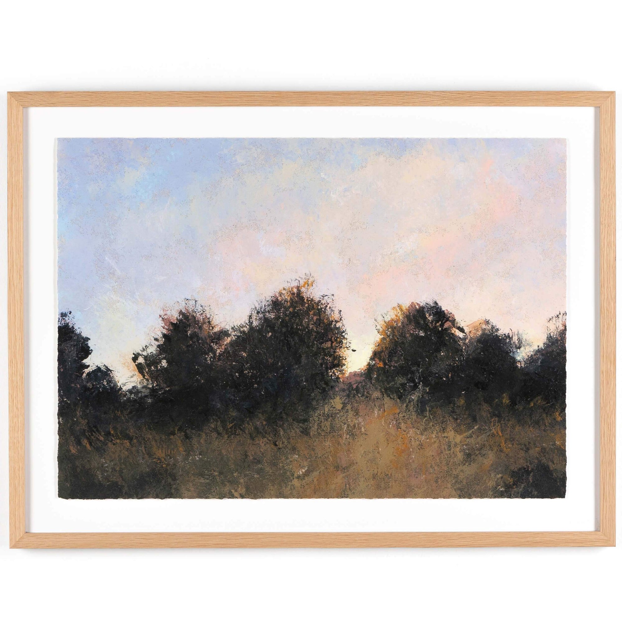 Inspired by the Texas Hill Country, Austin-based artist and registered nurse Aileen Fitzgerald paints atmospheric landscapes reminiscent of early Impressionism with a heavy emphasis on light. Framed within vertical grain white oak for a museum-quality look. Handmade in Austin, Texas.