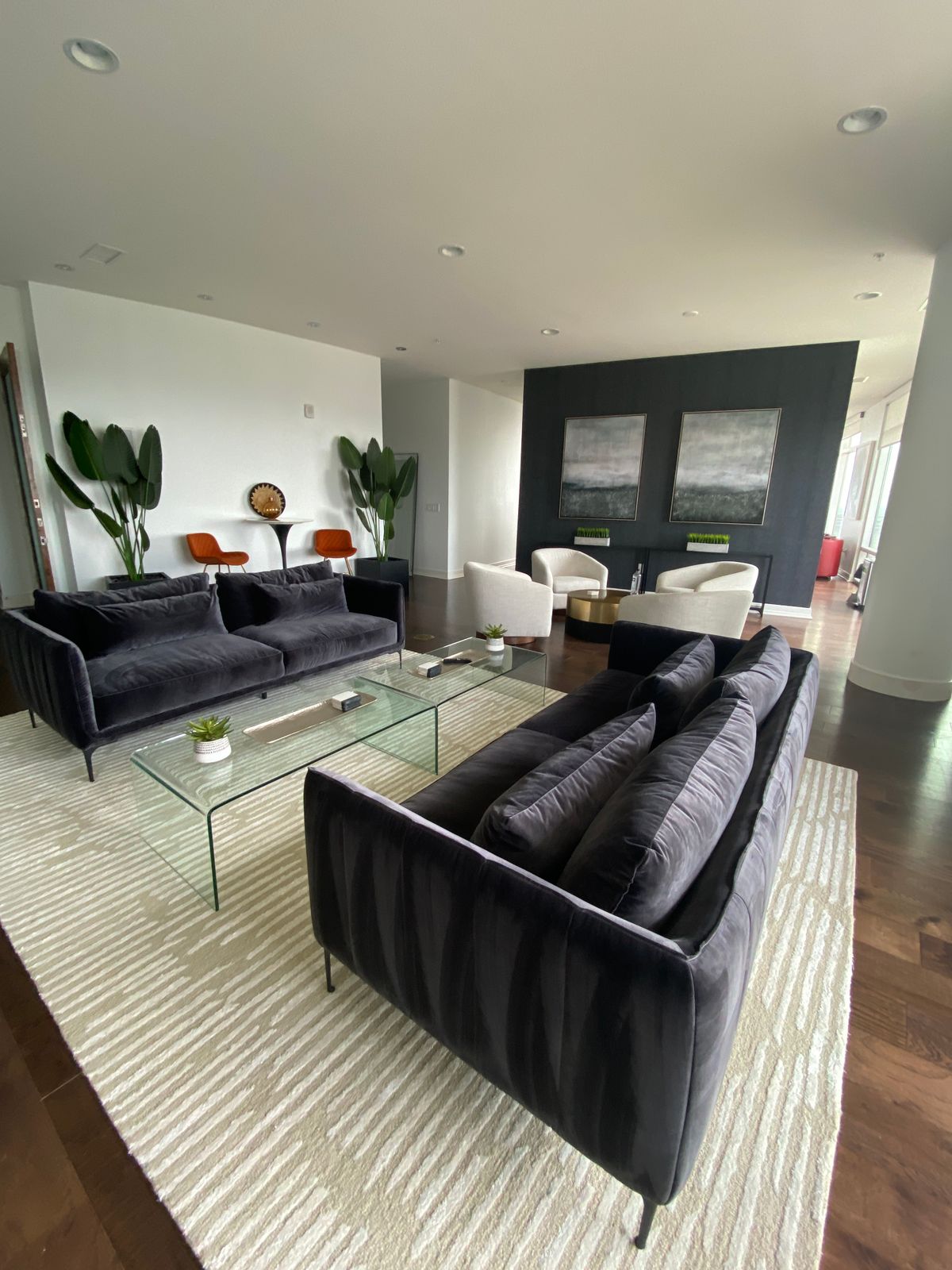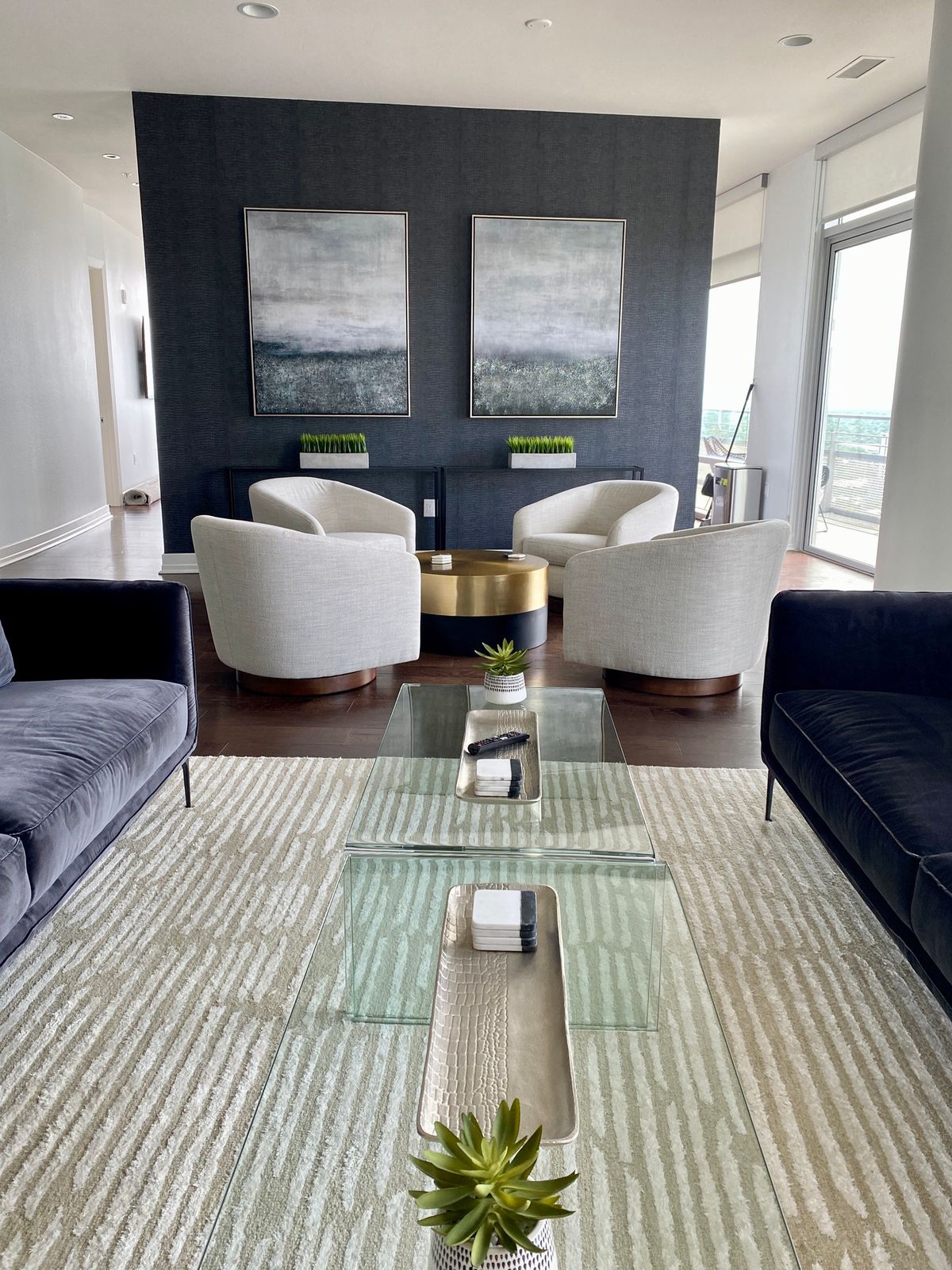 I got the pair of these for a client and I’m pleased with how they look. I like the silvery gold frame, the texture on the painting, and the glitter. They do not look cheap and the size is pretty good. The design is modern and sleek.