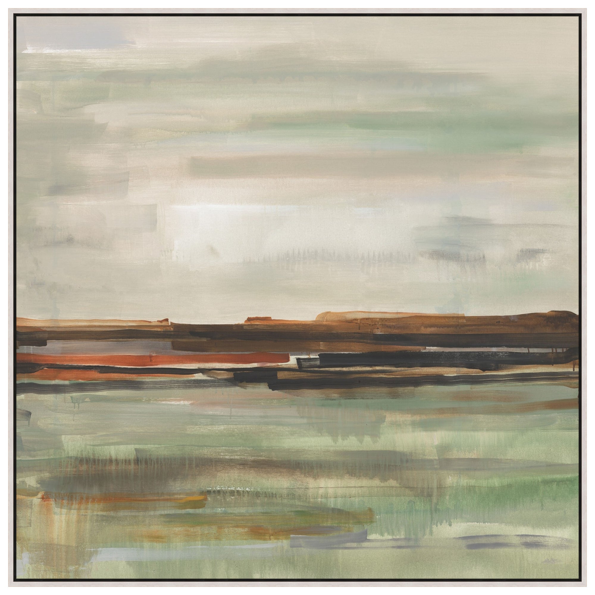 Off the Beaten Path VI Framed presents David Erickson’s captivating canvas artwork finished with Encaustic gel – Horizontal. Housed in a Poly Tall Floater White Wood frame, this piece offers a clean, contemporary presentation. Off the Beaten Path VI Framed brings both texture and modern style to any home or office space.