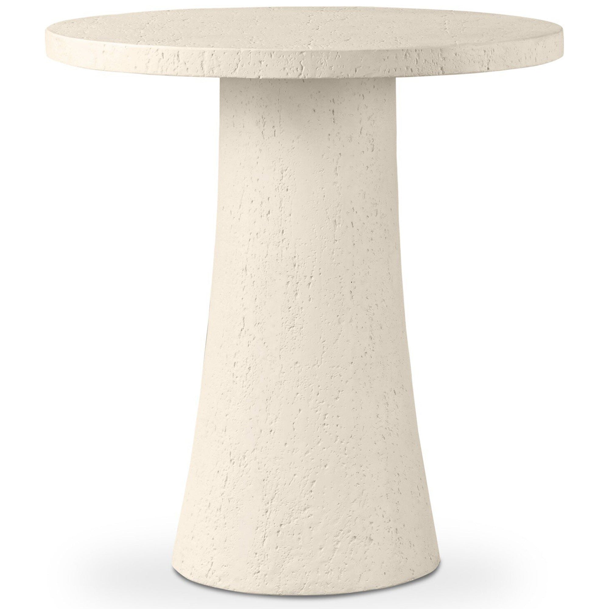 Textured ivory concrete finishes this pedestal-style outdoor counter table, featuring a subtly sculpted, tulip-shaped base that brings visual depth to any space. Designed for outdoor use, it is recommended to cover or store indoors during inclement weather and when not in use.