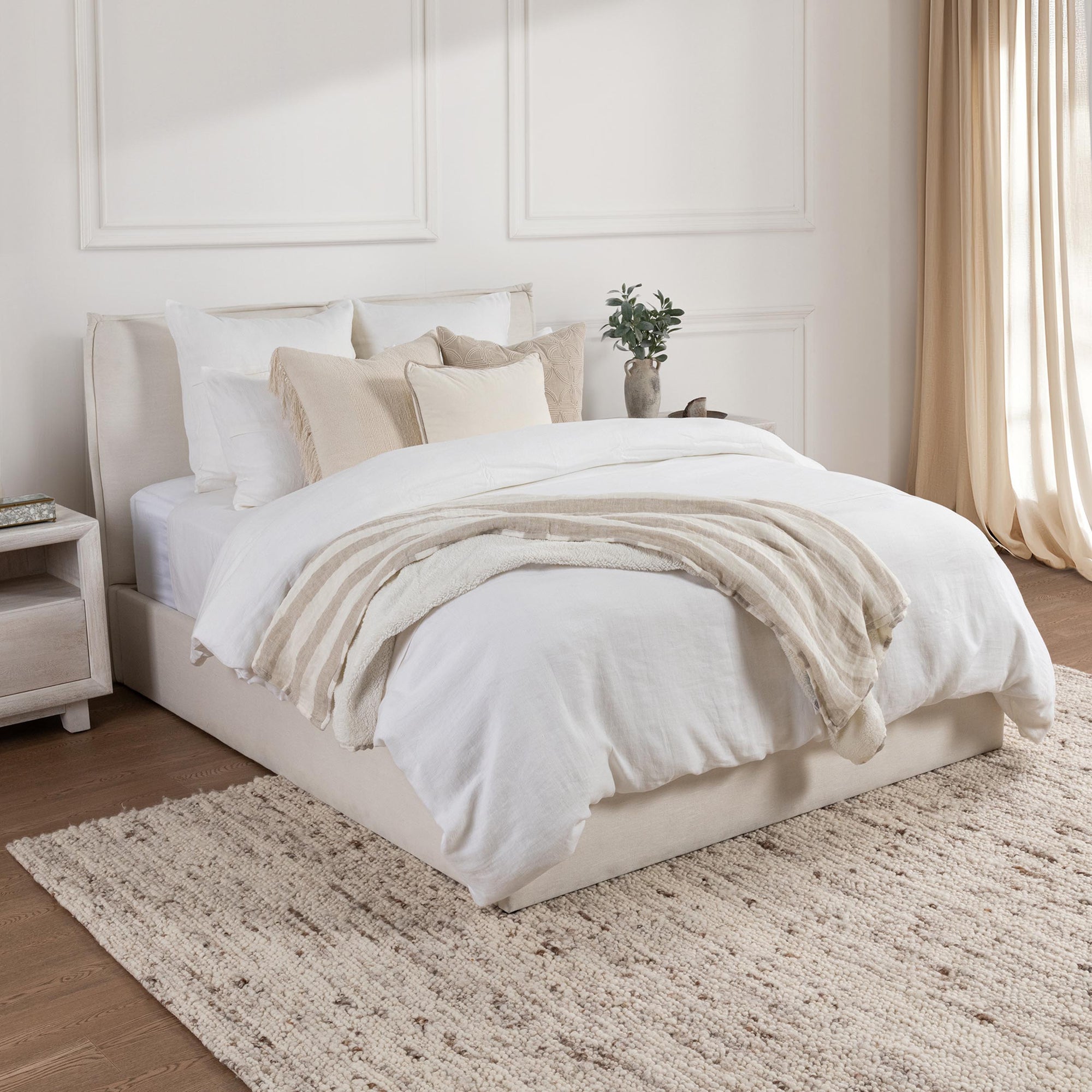 The Beaumont Sham is crafted from Belgian flax linen with a subtle herringbone weave and central pleat detail. Its soft texture and tailored design bring casual elegance to any bedroom. Prewashed for comfort, this sham layers beautifully with other bedding for a refined look.