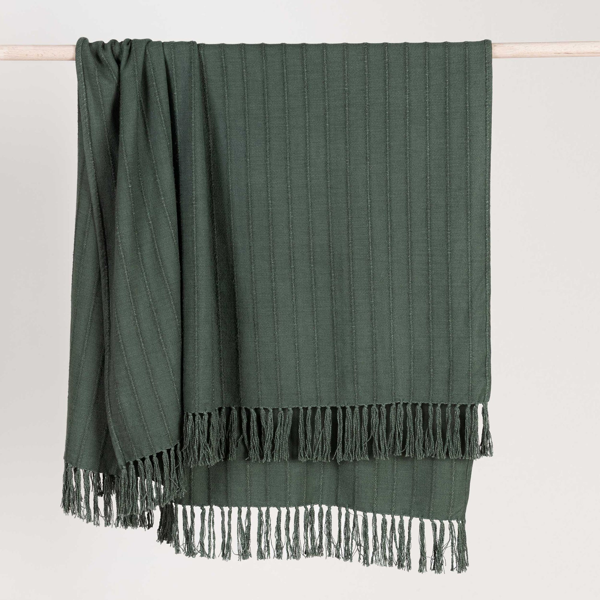 The Hunter Throw showcases a raised striped weave with hand-knotted tassels, adding texture and timeless style to any room. Soft and versatile, it’s an inviting accent that enhances both comfort and design.