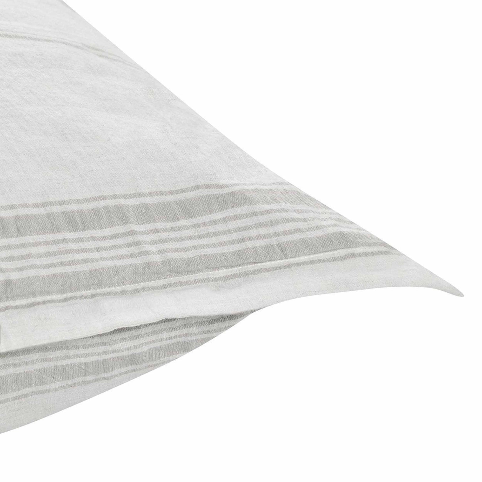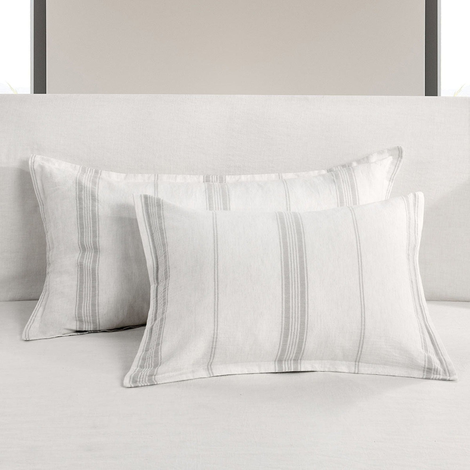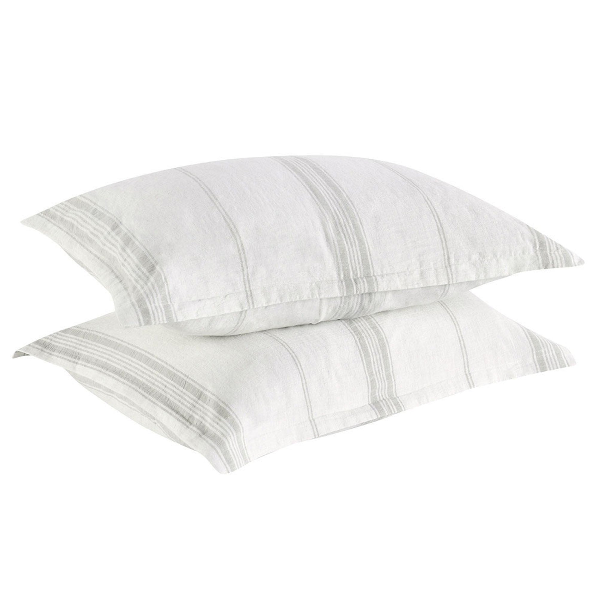 The Jayson Sham features timeless chambray stripes woven from a cotton, linen, and cashmere blend for a classic, refined look. Hidden button closure and corner ties keep the insert secure while maintaining a polished finish.