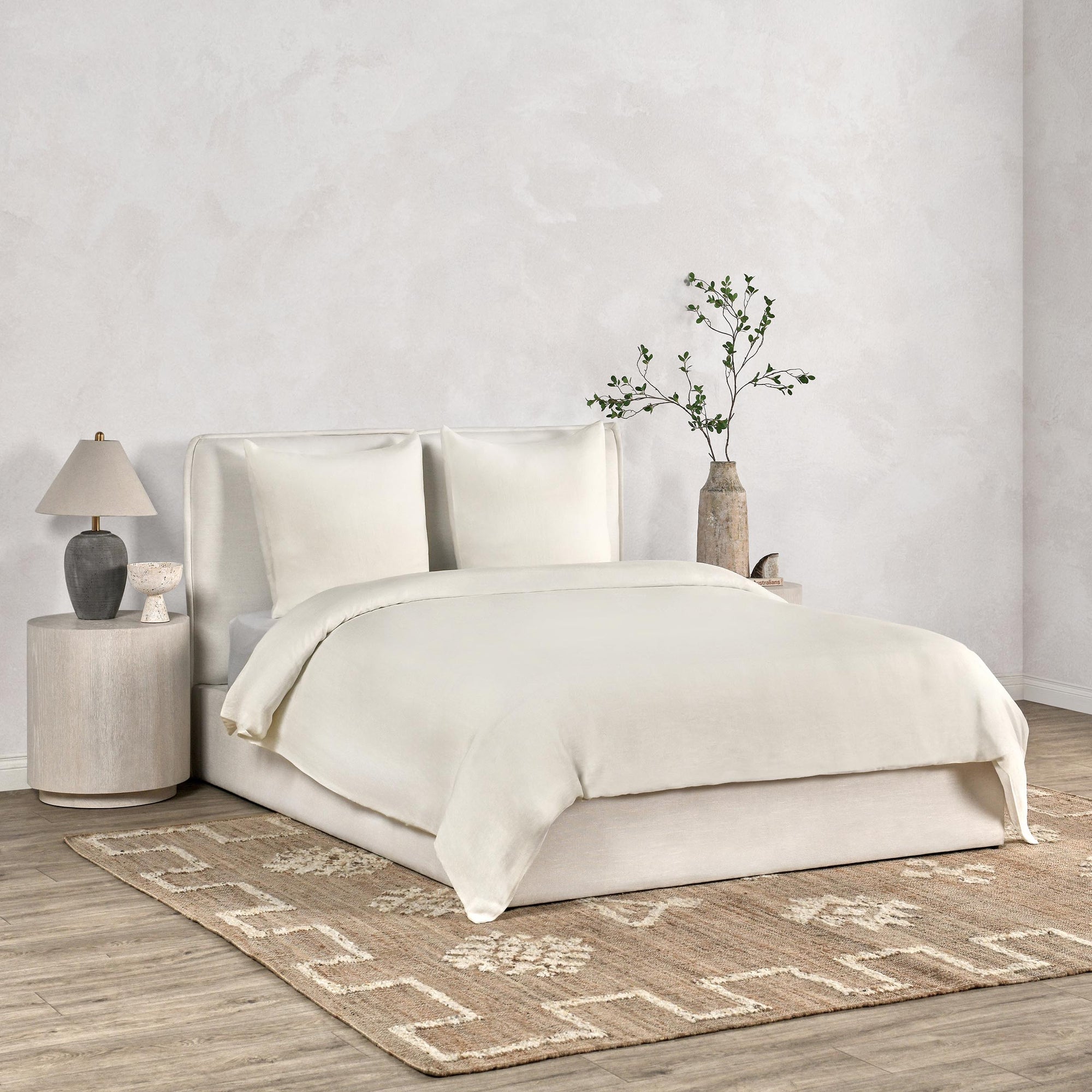 The Paloma Duvet Set brings crisp sophistication to any bedroom with its beautifully woven hemp fabric and stonewashed finish. Featuring a subtle texture and soft hand feel, this collection offers timeless appeal and versatile styling. A hidden button closure ensures a clean, tailored look, while corner ties keep the insert securely in place. Perfect for enhancing both classic and contemporary interiors.