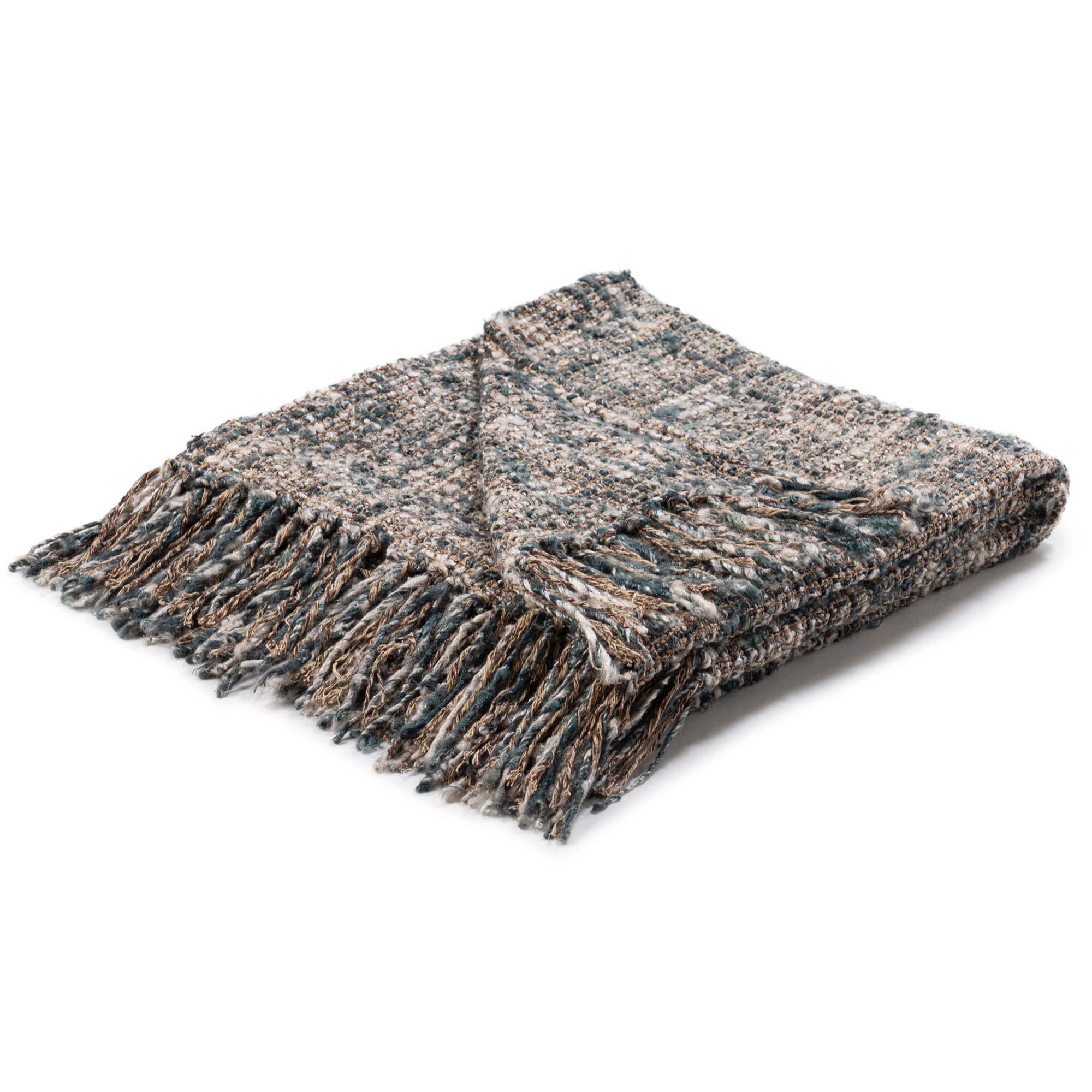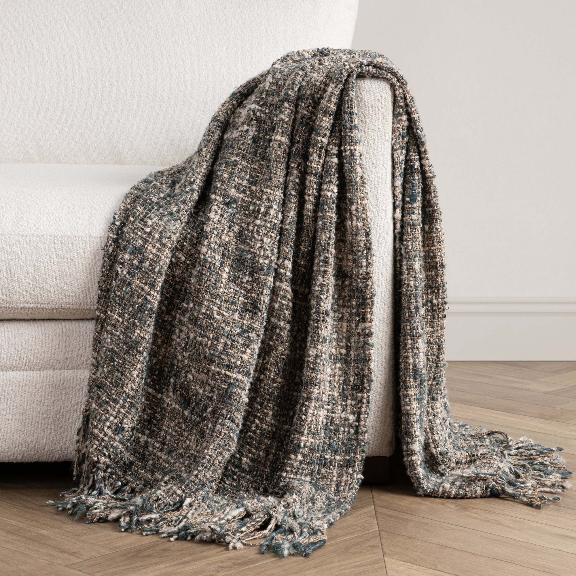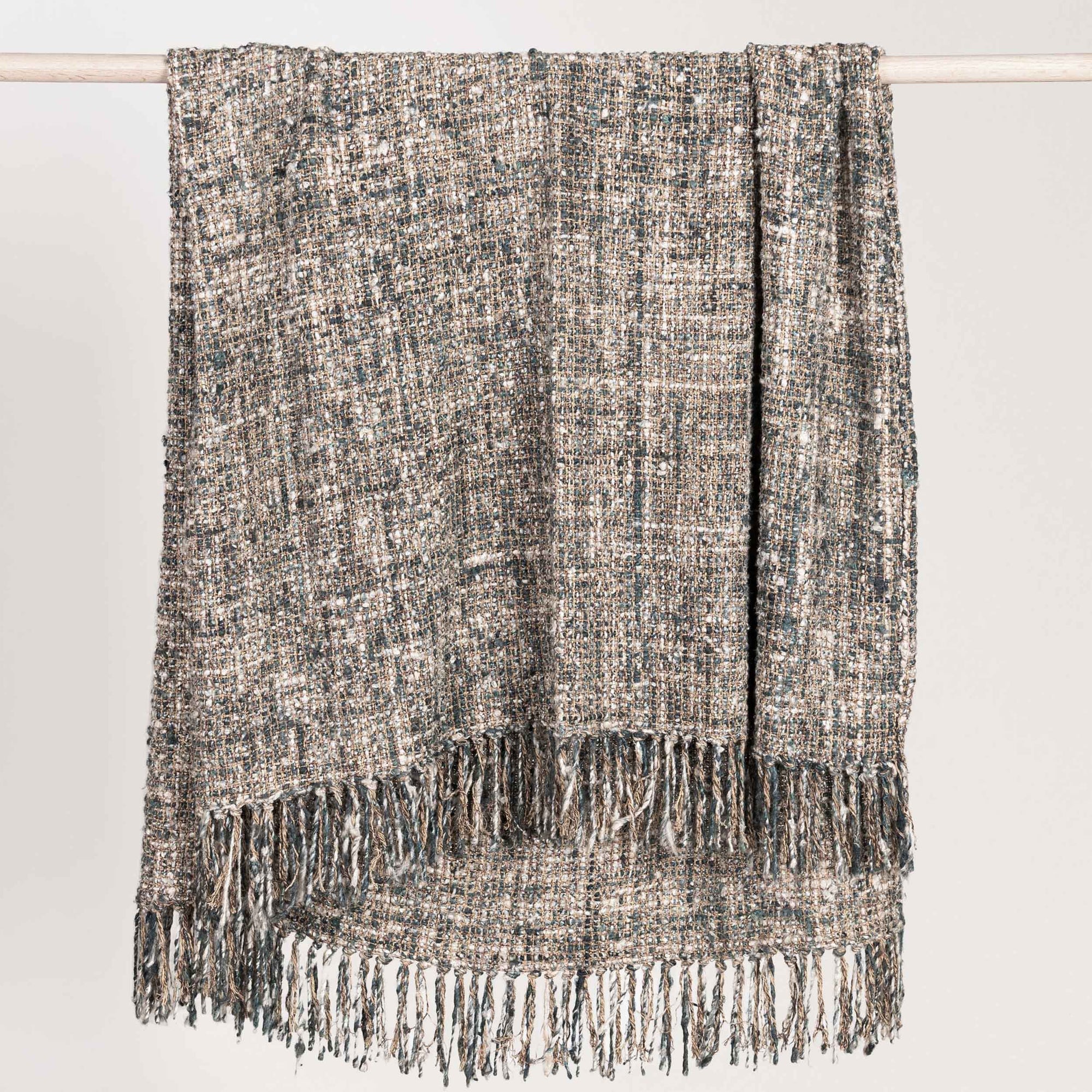 The Porter Throw combines cozy texture with a variegated look created from new and recycled fibers. Oversized in design, it features hand-knotted tassel accents, making it a stylish and versatile layering piece for any room.