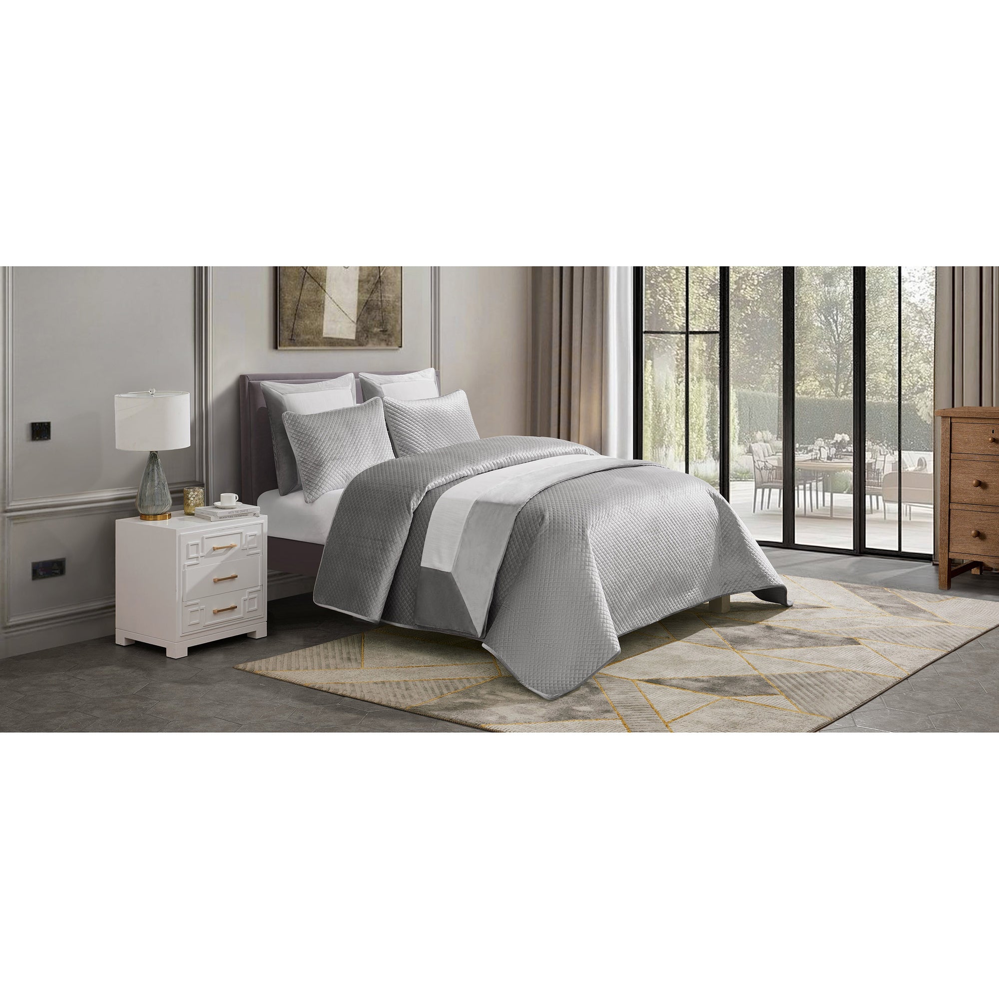 The Rhodes Quilt Set features a diamond-quilted velvet coverlet with a sateen back and matching shams. Silky to the touch and effortlessly elegant, this set brings refined texture and comfort to your bedroom.