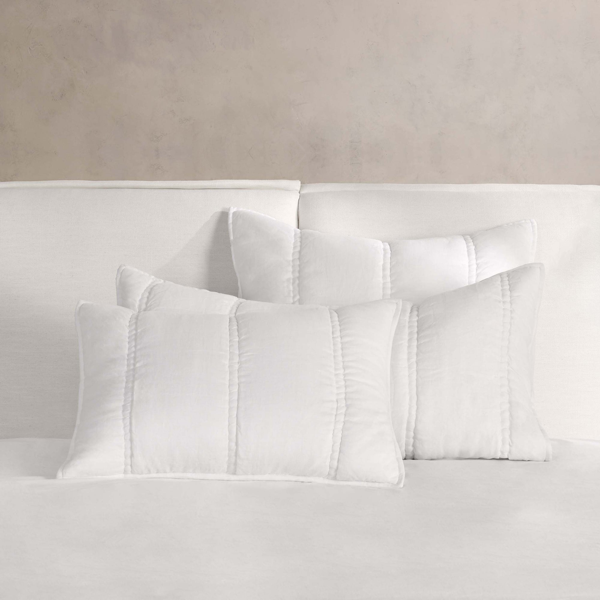 The Rowen Sham features hand-quilted channel stitching that adds crisp, airy texture to any space. Perfect for layering or displaying on its own, this sham provides a soft, breathable feel and a billowy look. Stonewashed for subtle variations in color and texture, prewashed to maintain softness and prevent shrinking.
