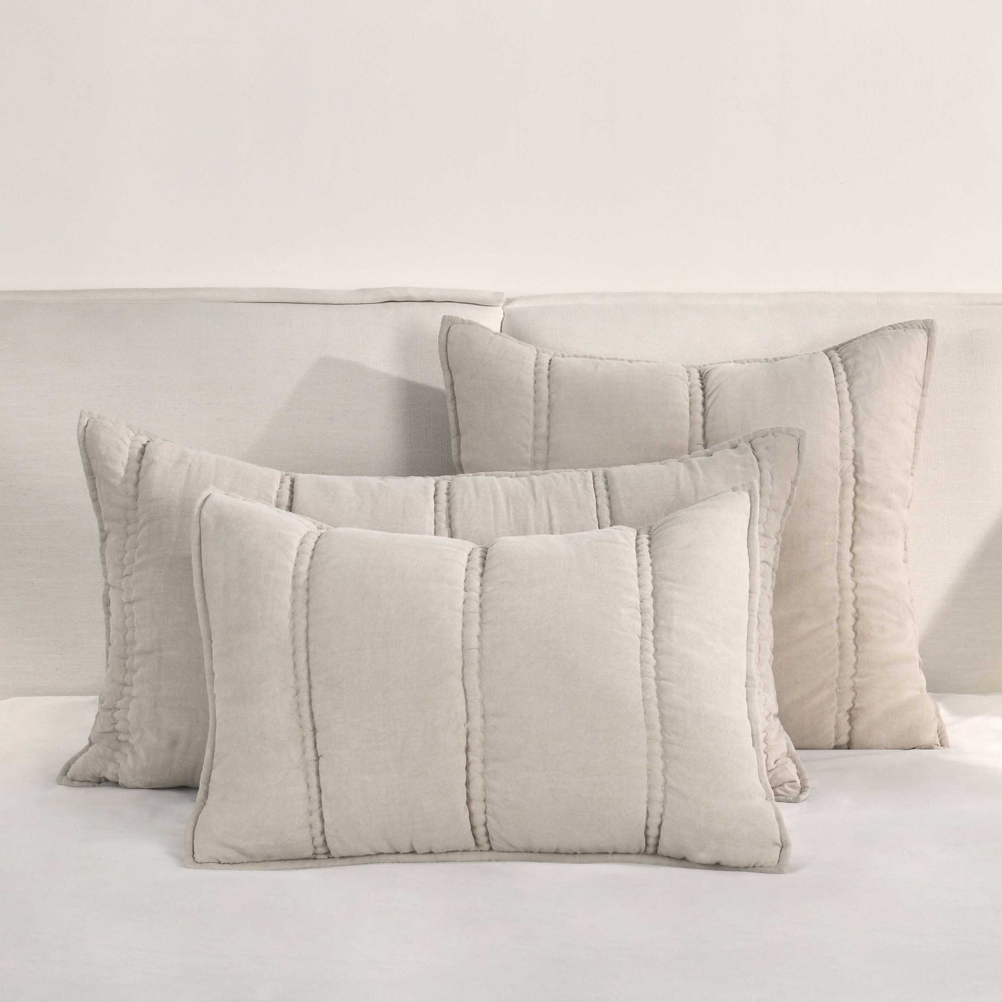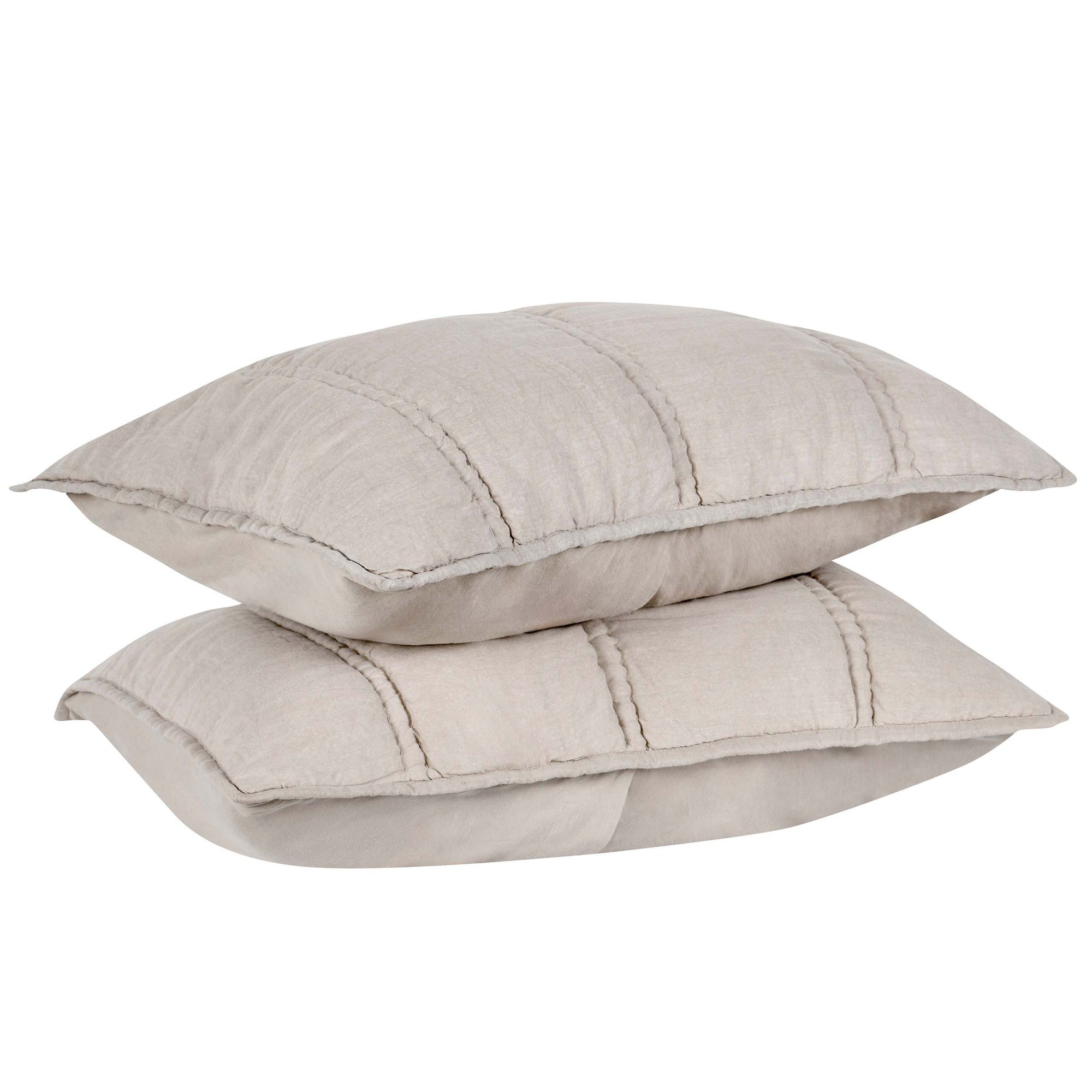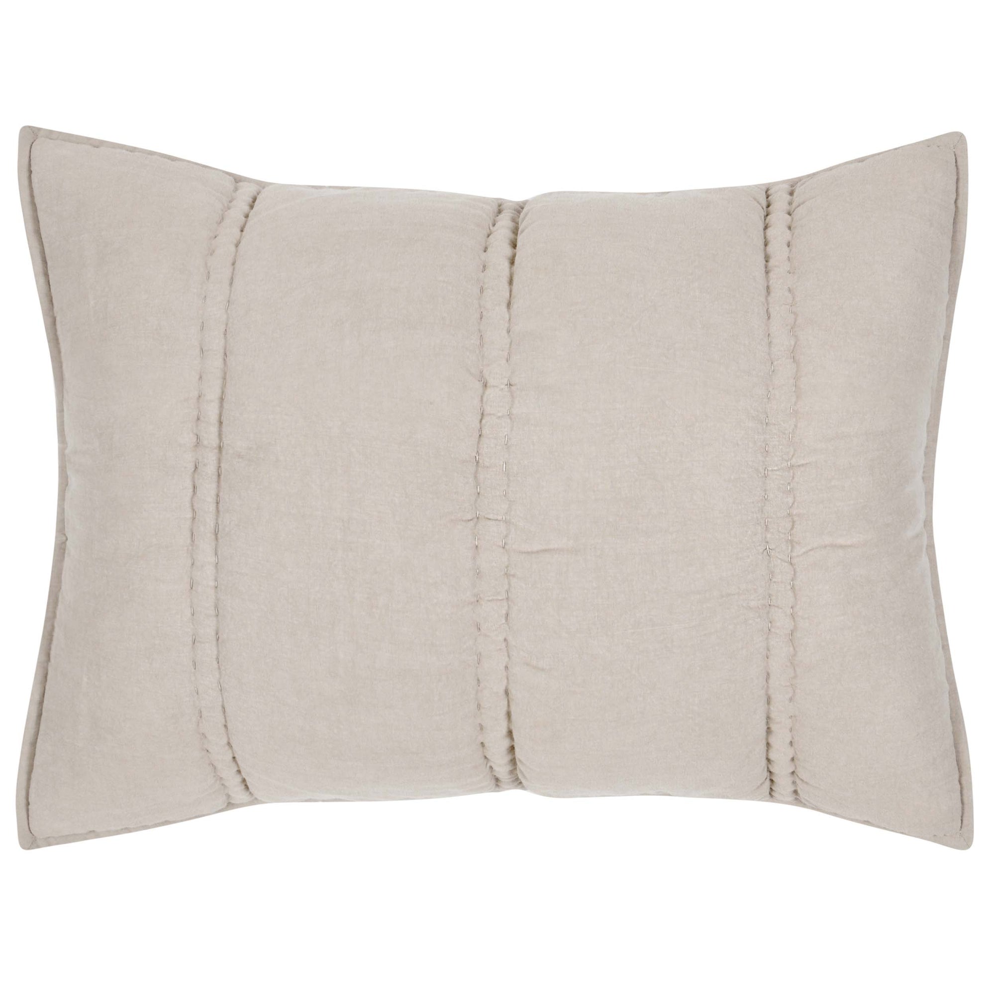 The Rowen Sham features hand-quilted channel stitching that adds crisp, airy texture to any space. Perfect for layering or displaying on its own, this sham provides a soft, breathable feel and a billowy look. Stonewashed for subtle variations in color and texture, prewashed to maintain softness and prevent shrinking.