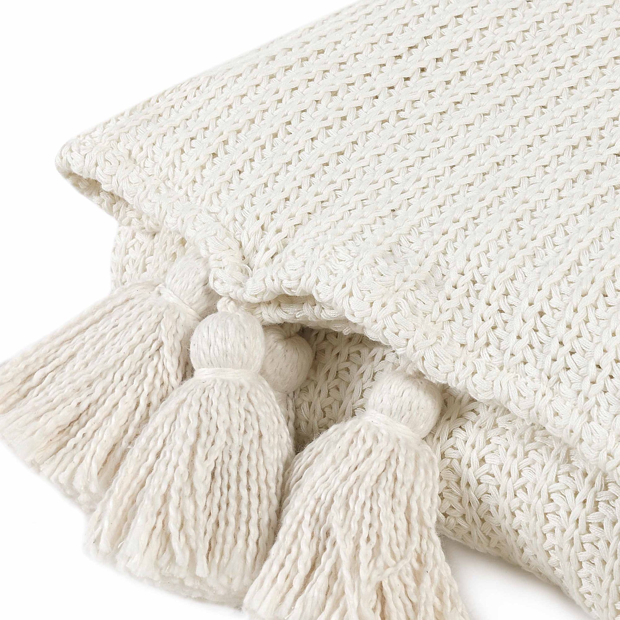 The Veda Throw is handmade with a classic knit design, offering timeless appeal that complements any space. Finished with oversized cotton tassels, this throw enhances your décor with cozy charm while remaining versatile enough to suit a variety of styles and color schemes.