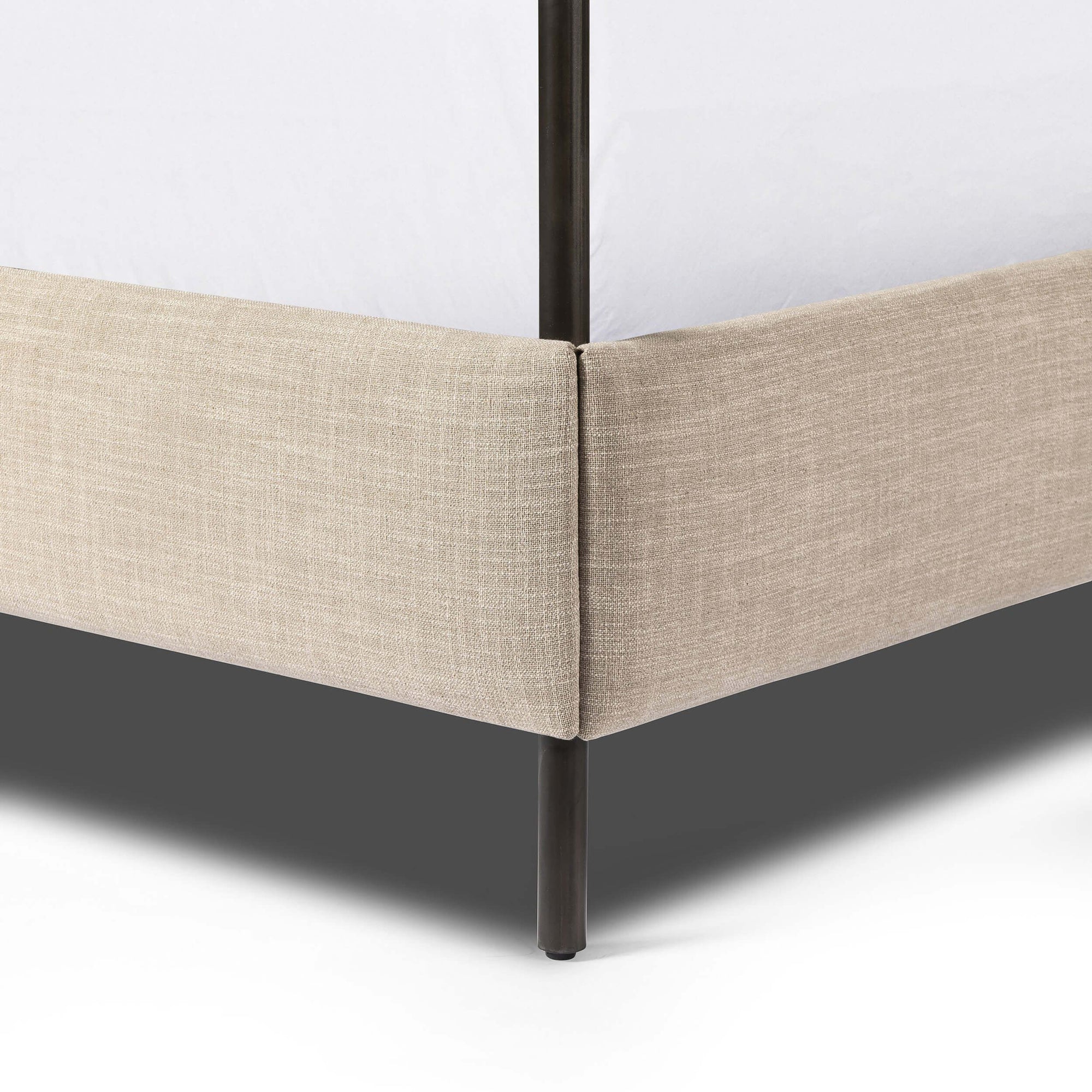The Anderson Canopy Bed in Palm Ecru brings texture into play with its refined upholstered headboard and sleek, contemporary lines. The dramatic canopy frame adds architectural interest, creating a striking focal point for your bedroom. Finished in a rich ecru hue, this bed exudes modern sophistication while providing a cozy retreat for restful nights. Effortlessly stylish, the Anderson Canopy Bed blends bold design with inviting comfort.