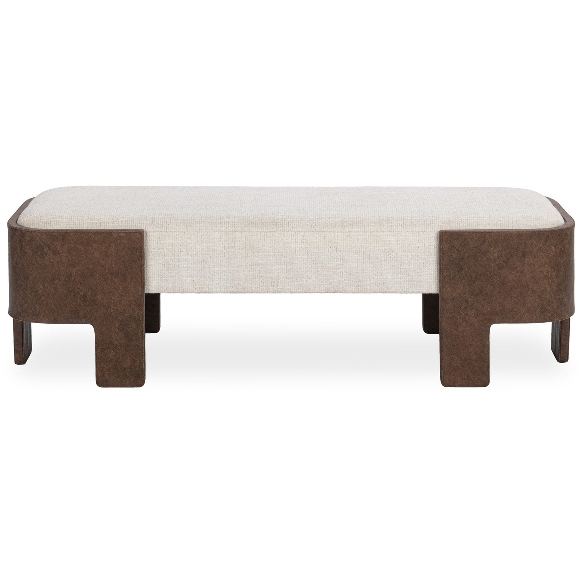The Janya Accent Bench adds refined style to your home with a soft upholstered fabric seat and a sturdy base wrapped in rich top grain leather. Perfect for an entryway, bedroom, or living room accent, it combines comfort with durability. The sleek silhouette and mixed-material design make it a versatile piece that complements both contemporary and classic interiors.