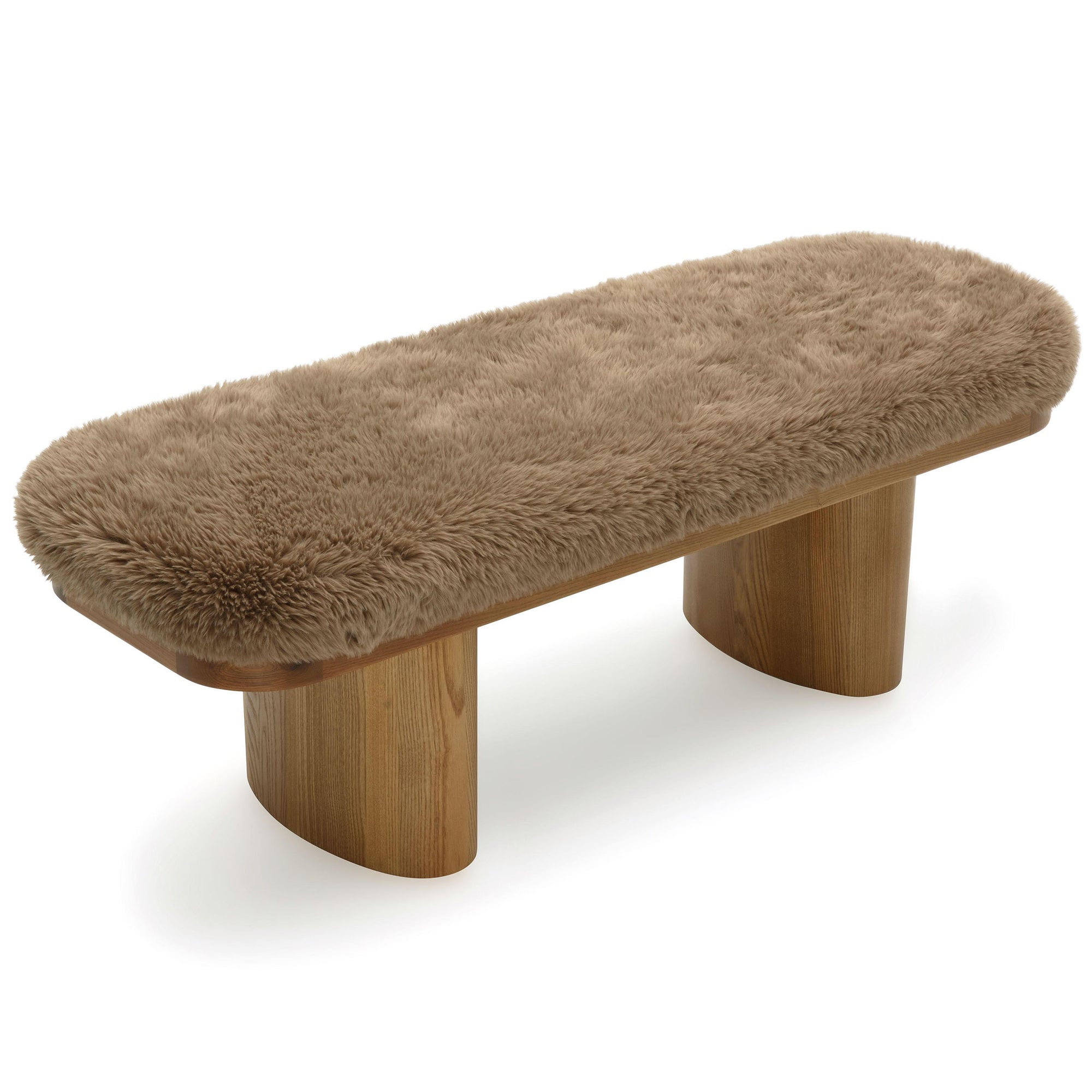 The Ollie Vegan Shearling Bench brings cozy texture and versatile style to any space. Upholstered in plush vegan shearling that’s soft to the touch and low-maintenance, this oversized bench is complemented by natural ash wood legs. Perfect for an entryway, living area, or at the foot of a bed, the Ollie blends sculptural presence with everyday function while remaining cruelty-free and contract-grade durable.