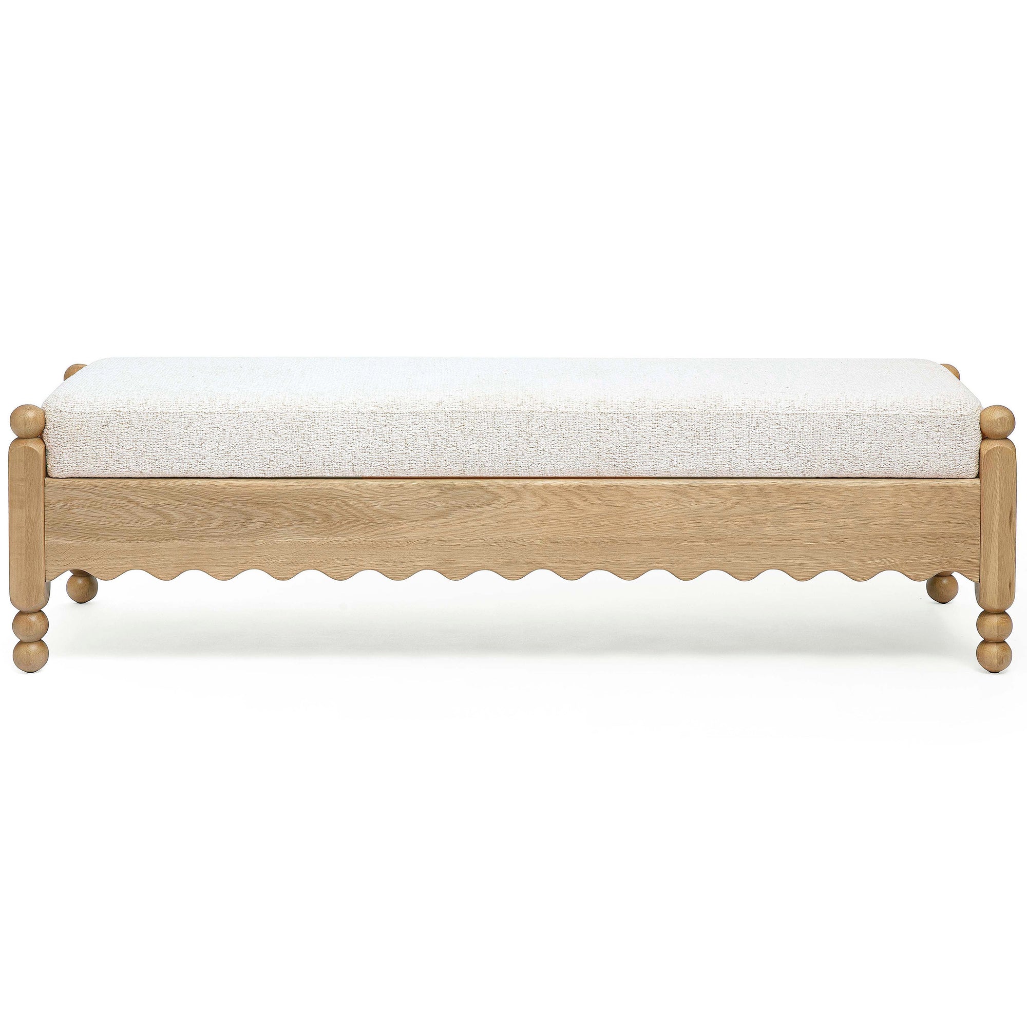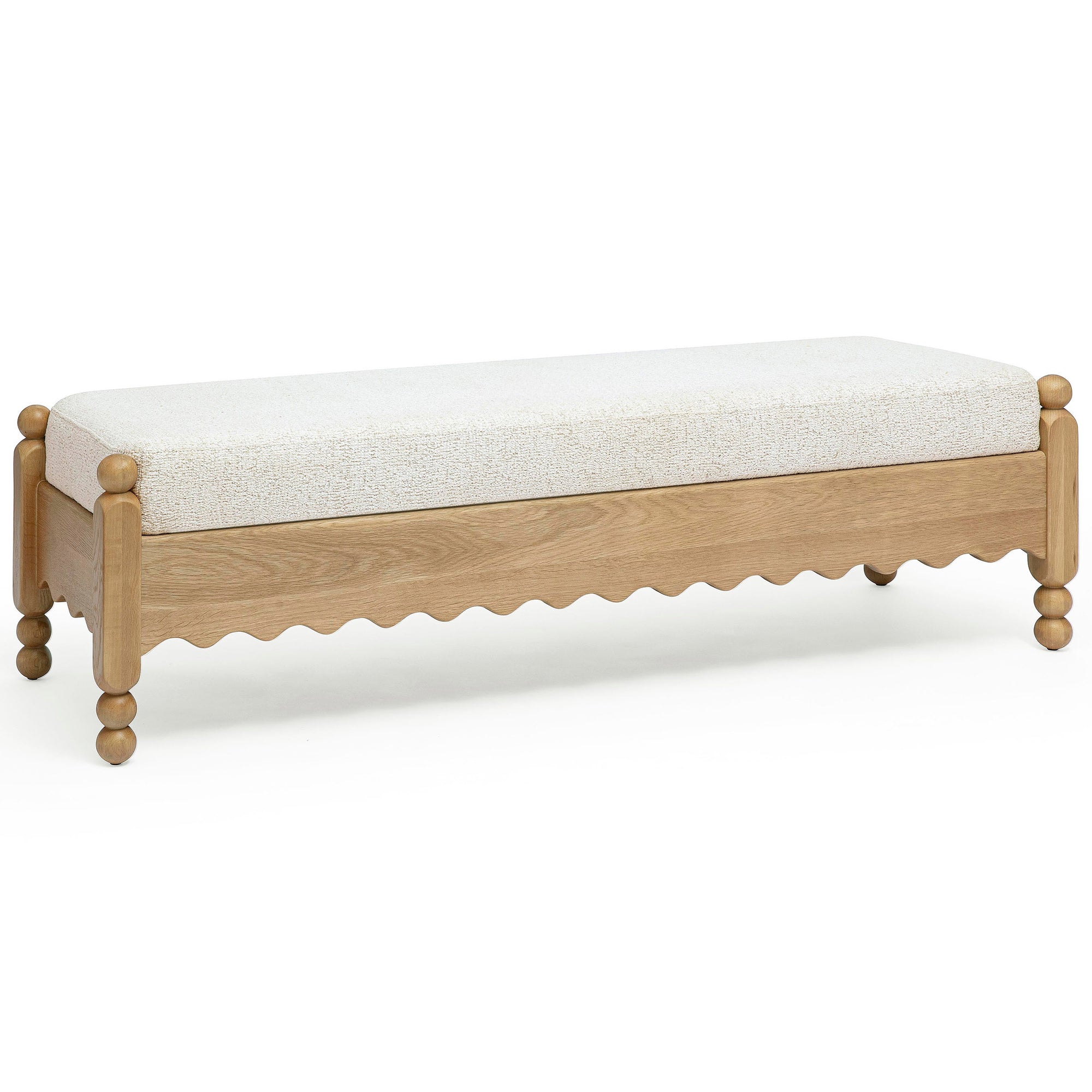The Thelma Basketweave Bench features a soft sculptural profile wrapped in durable performance fabric. Its streamlined form and supportive cushioning make it a versatile piece for entryways, bedrooms, or living spaces.