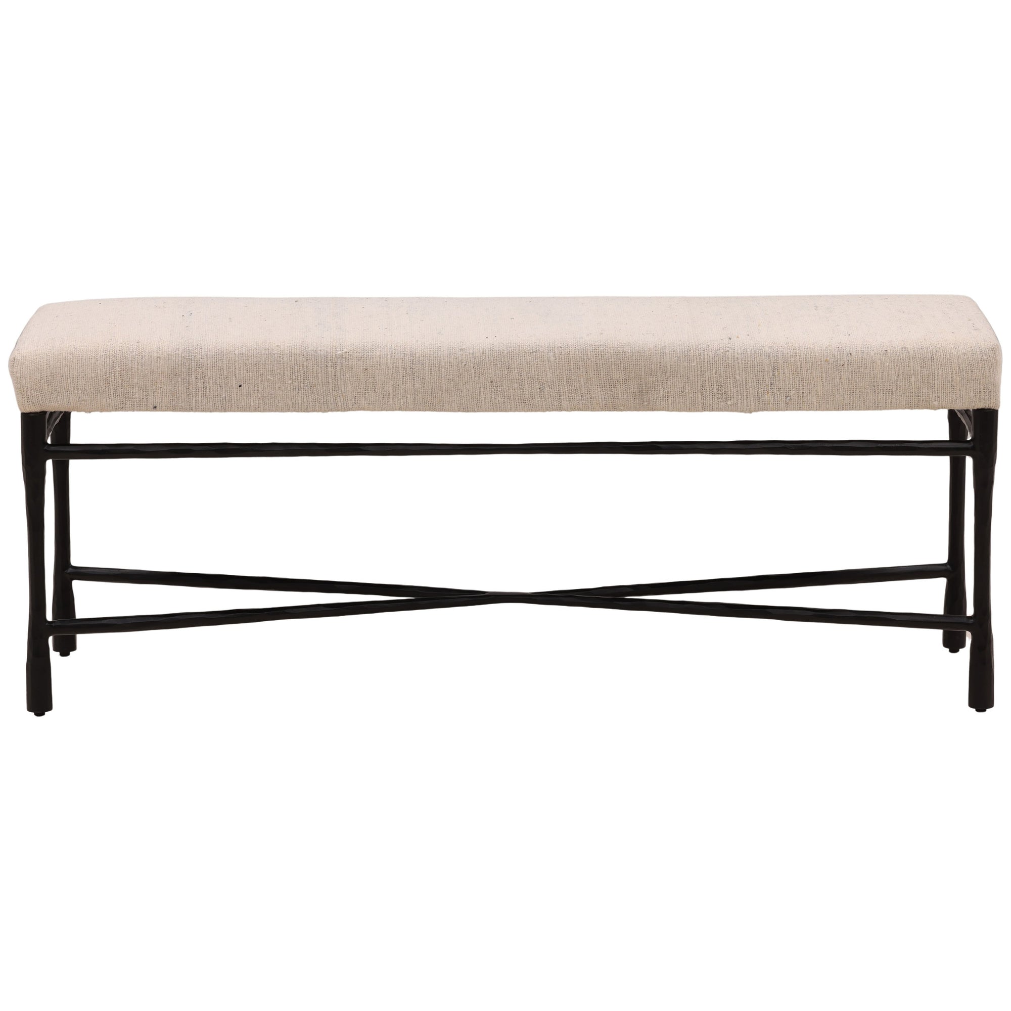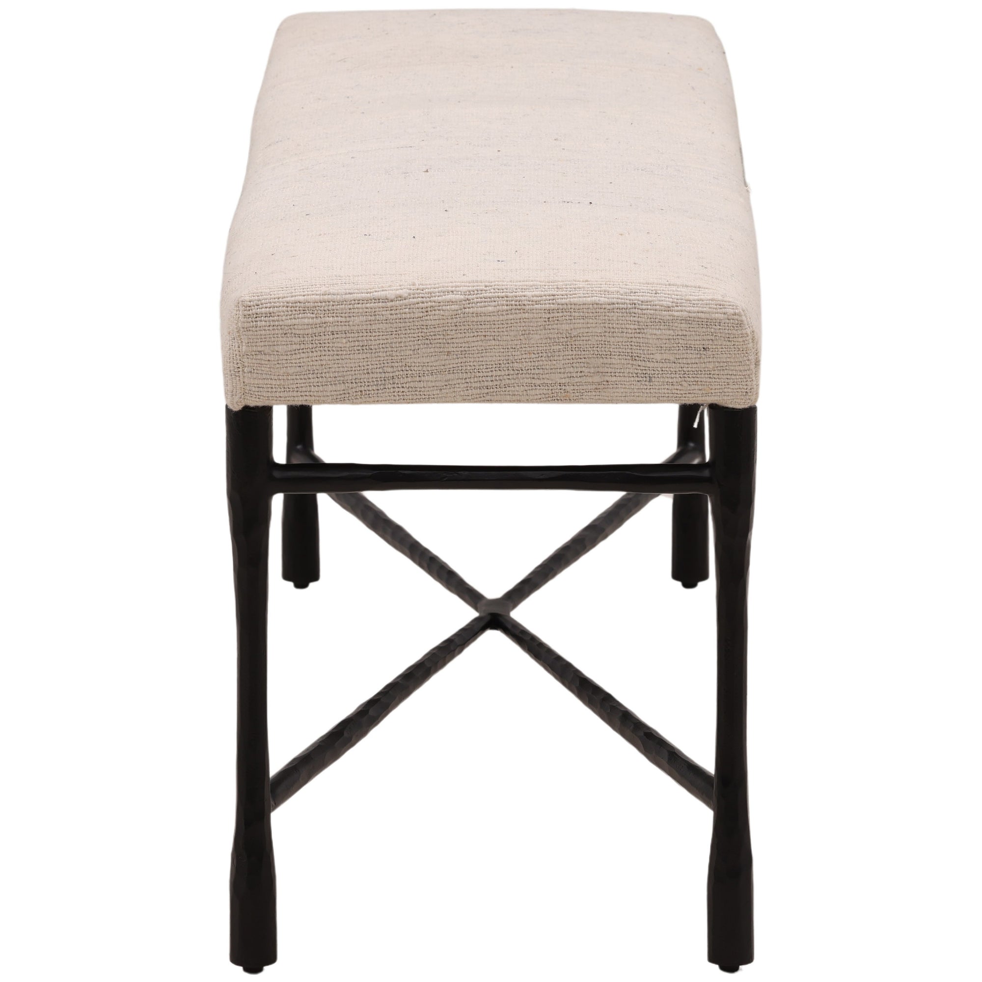 The Trystan Bench blends soft fabric upholstery with a sturdy iron base for a modern yet versatile look. Its cream seat paired with a sleek black frame makes it suitable for entryways, bedrooms, or living spaces. A compact bench that adds both comfort and function.
