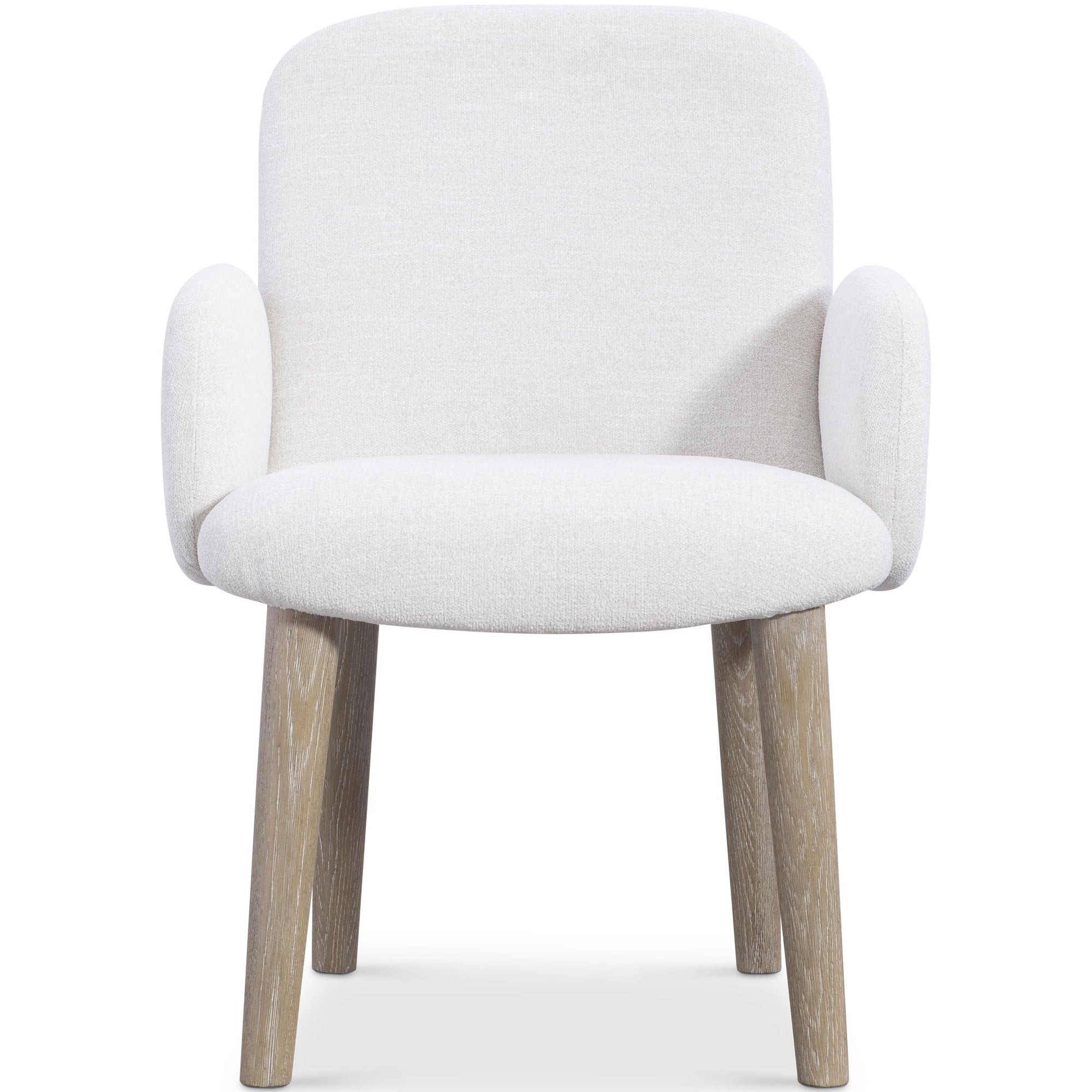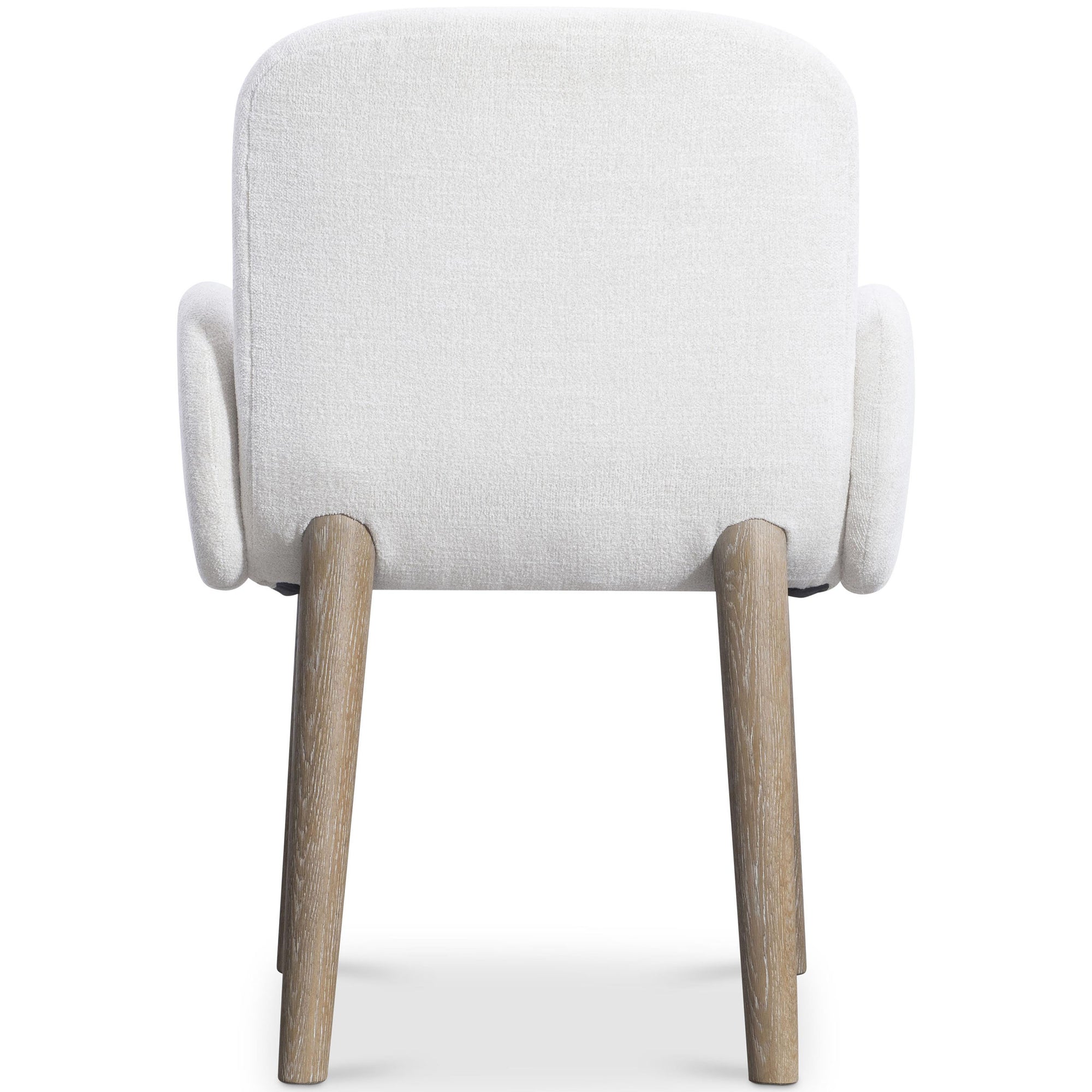 The Loggia Arm Chair is defined by simple lines that craft unique, interlocking shapes. The distinct forms of the back, sides, and seat fit together perfectly, uniting for a comfortable and exceptionally modern design. Exposed, wire-brushed oak legs in a light Aria finish complete the chair's clean and sophisticated aesthetic.