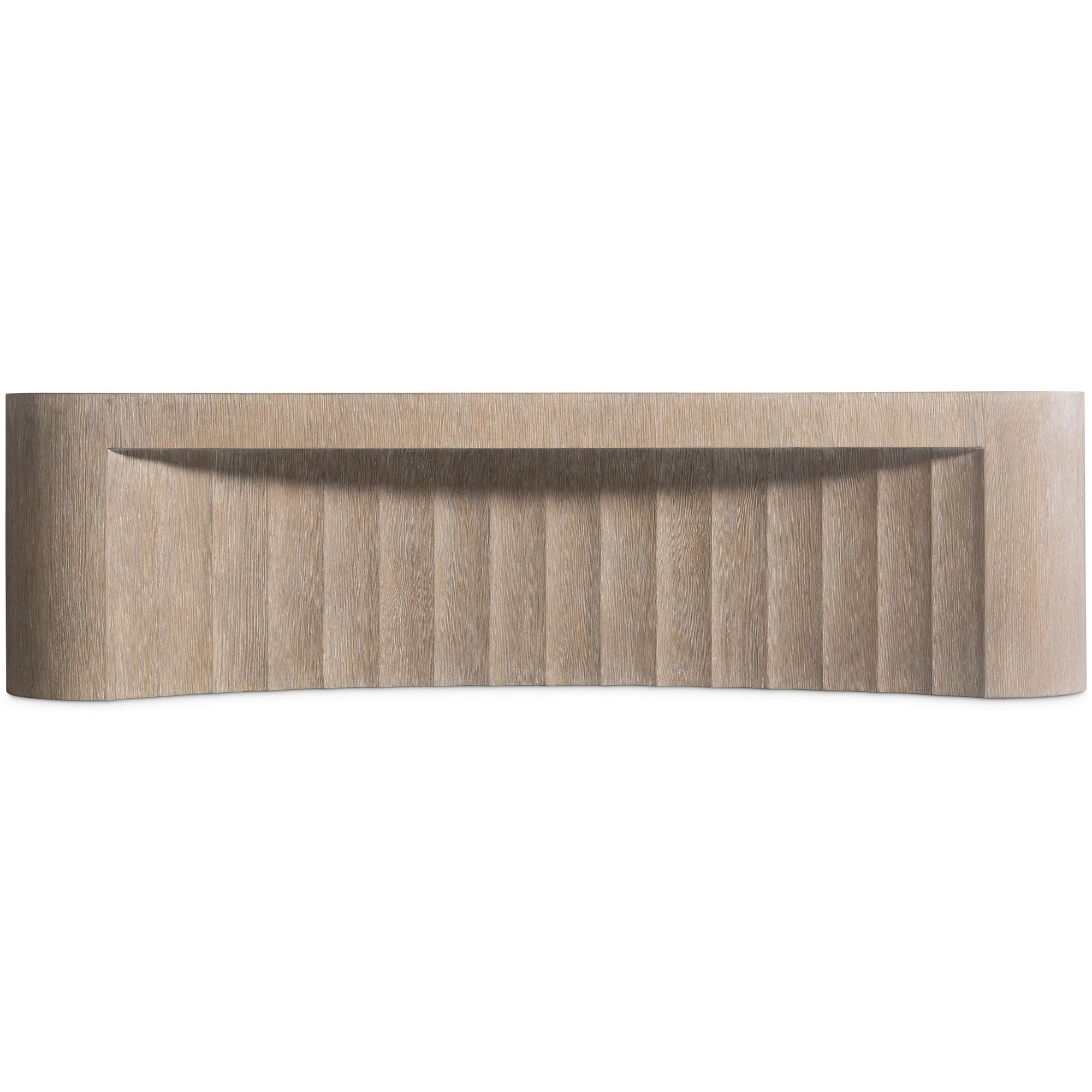 The Loggia Cocktail Table draws inspiration from classical architectural columns, showcasing soft curves and refined fluting. Crafted with a wire-brushed oak top in the warm Aria finish, the table features sculpted resin sides with a wood grain texture and a concave base for an elegant, balanced silhouette. The design is completed with smooth rounded corners and discreet casters for easy movement.