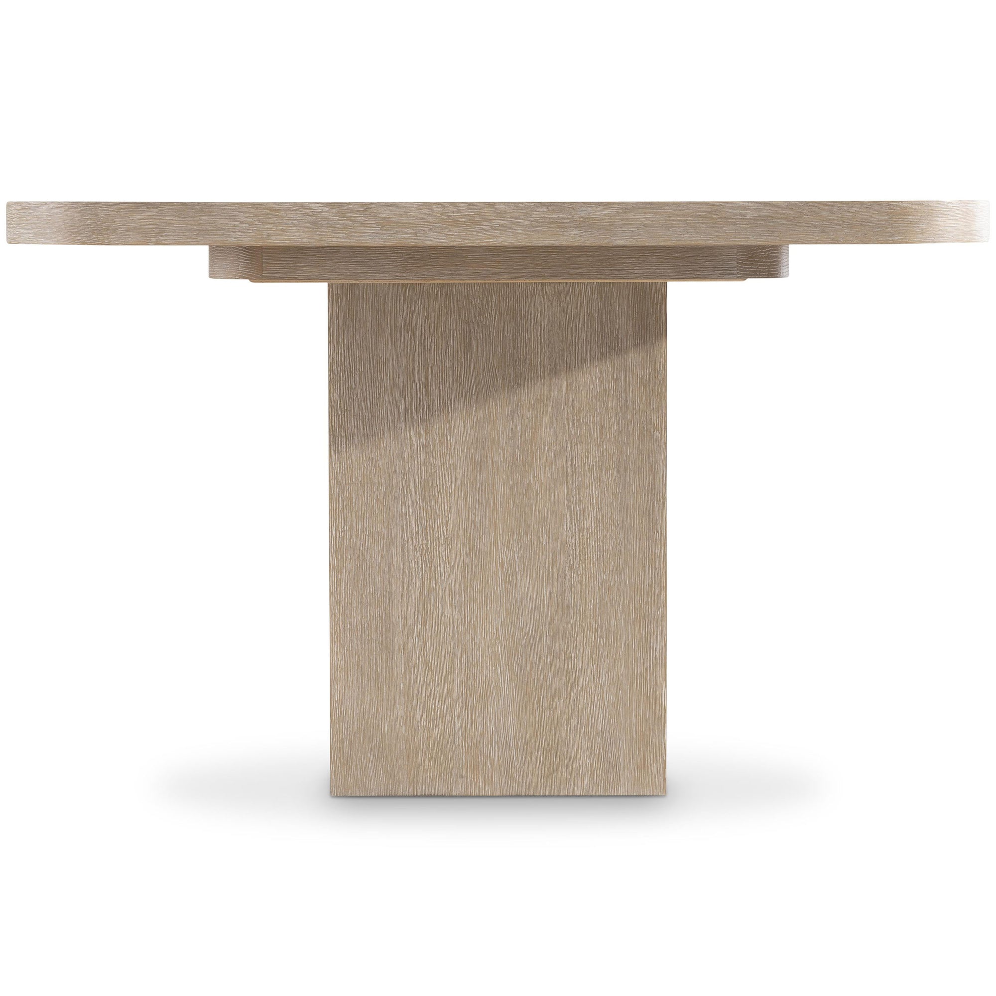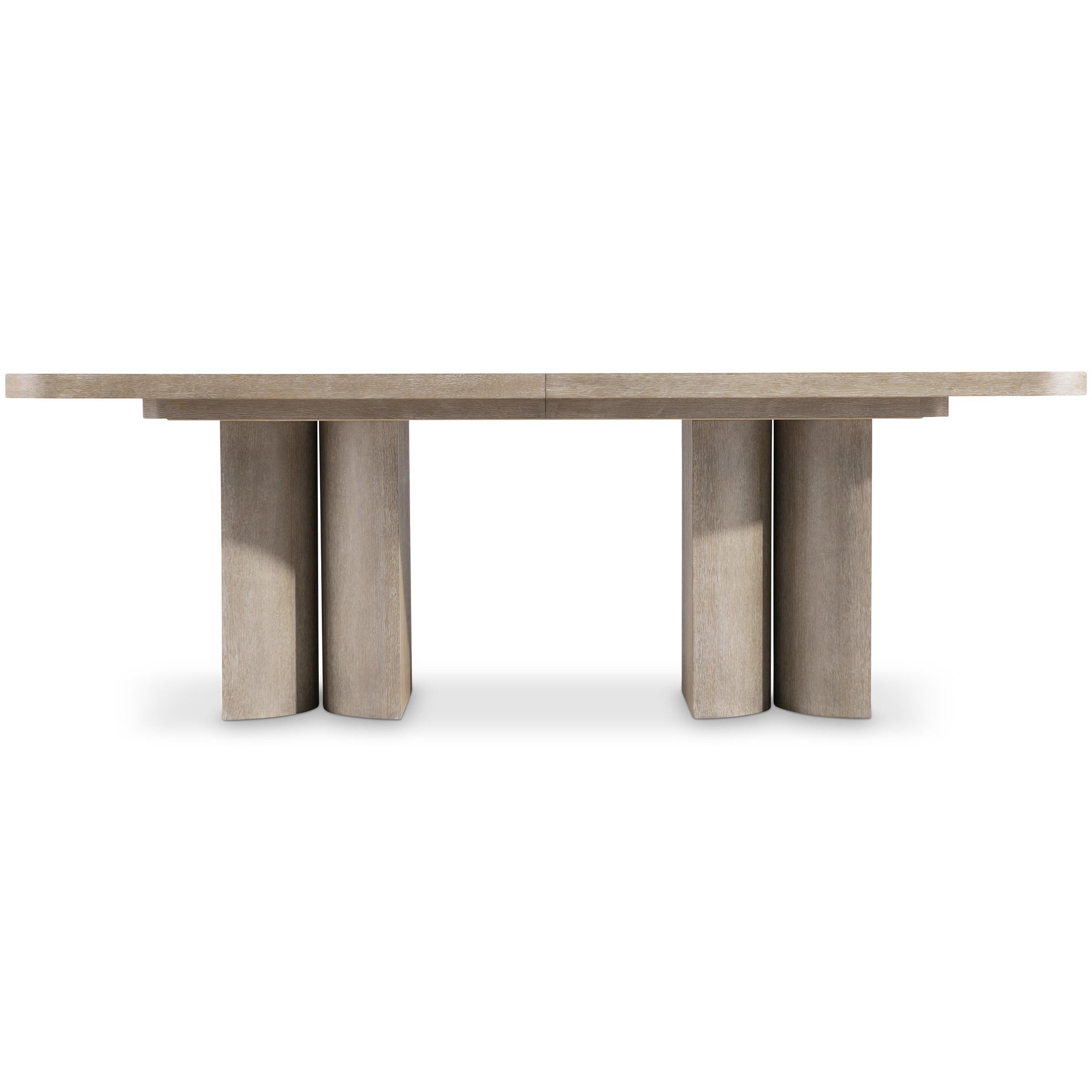 The Loggia Rectangular Dining Table creates a unique and sculptural foundation by placing the curved sides of architectural pilasters together to form a stunning double pedestal base. This base balances a generous rectangular top with softened, rounded corners for a clean, modern profile. Crafted from beautifully textured, wire-brushed oak and finished in a light Aria hue, this table makes an artistic statement.