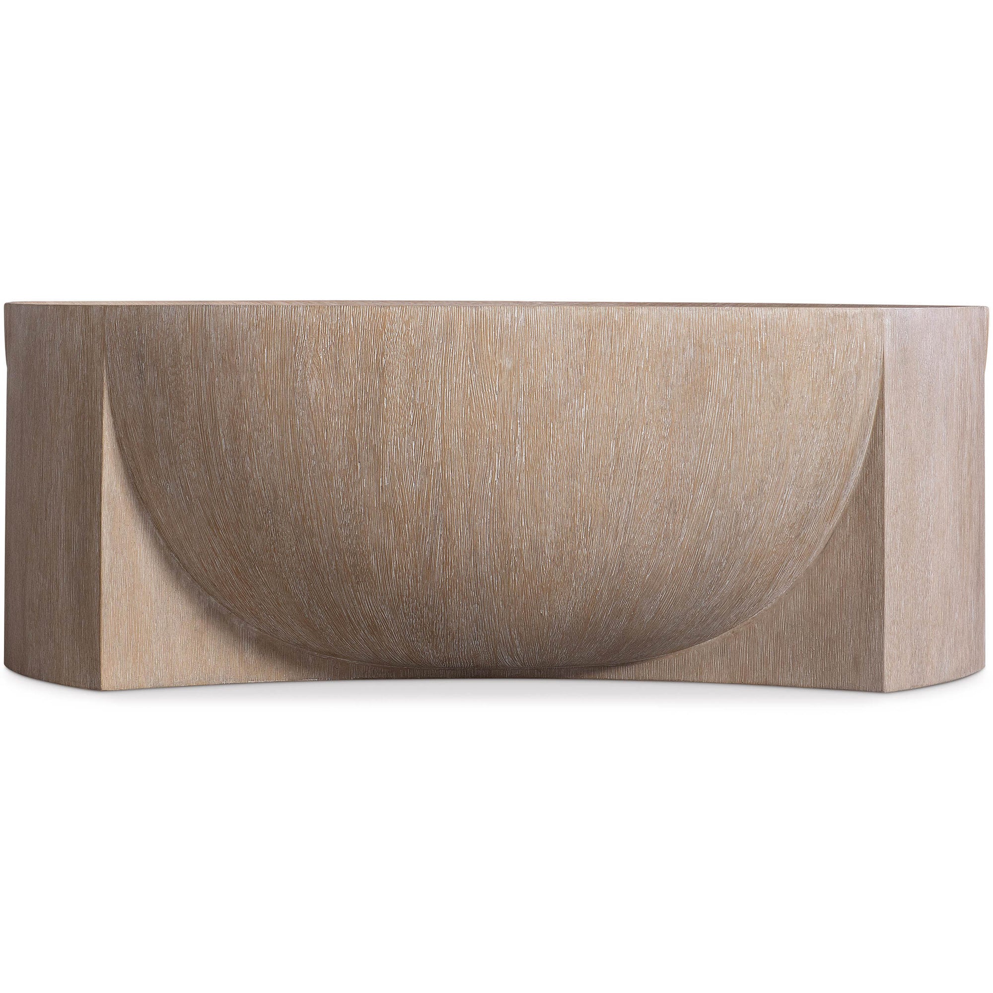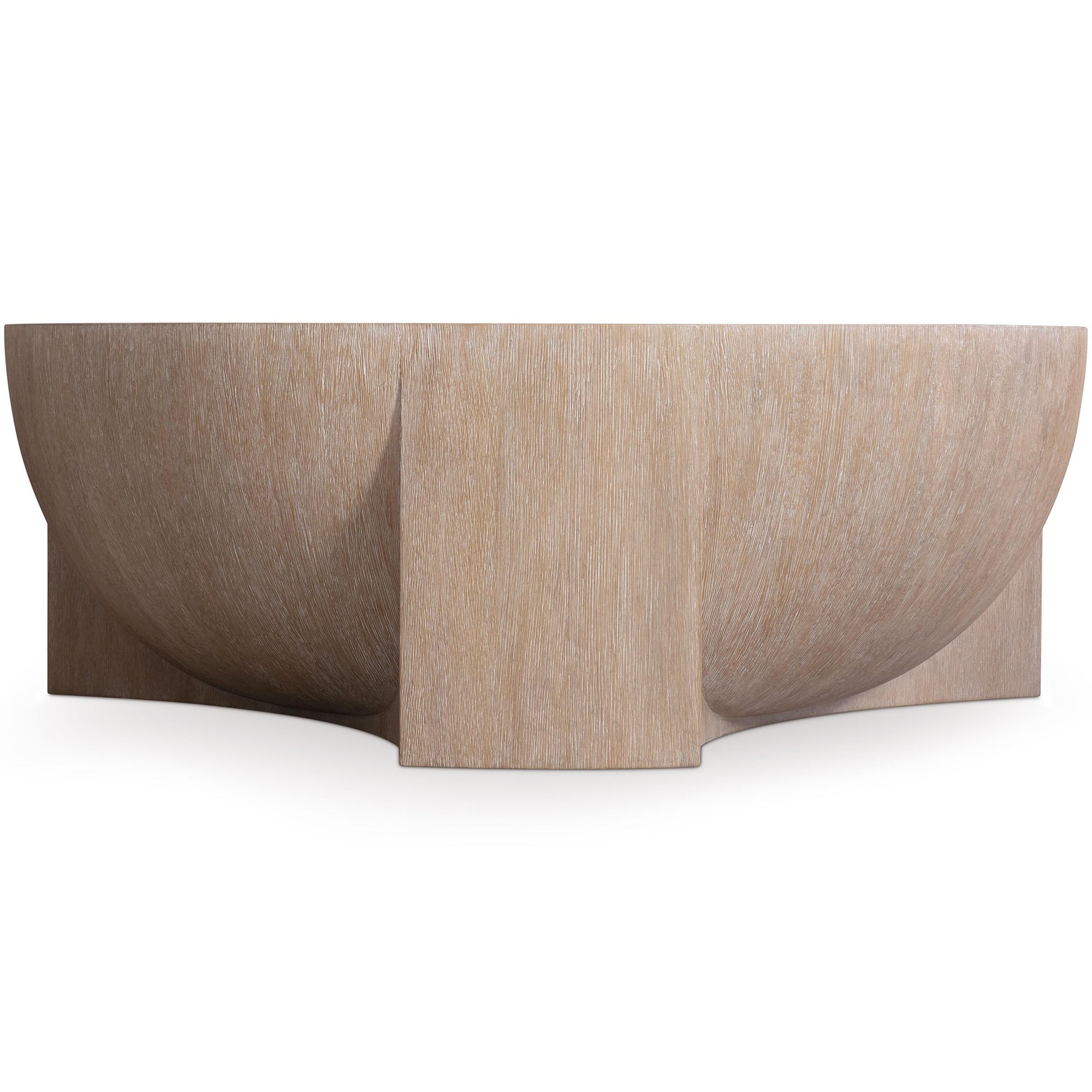 The Loggia Round Cocktail Table showcases a modern sculptural design with convex and concave forms. Its shallow basin top rests gracefully on straight-lined supports, creating a balanced and elegant silhouette. Finished in Aria, this table combines subtle texture with smooth curves to make a refined statement in any living space.