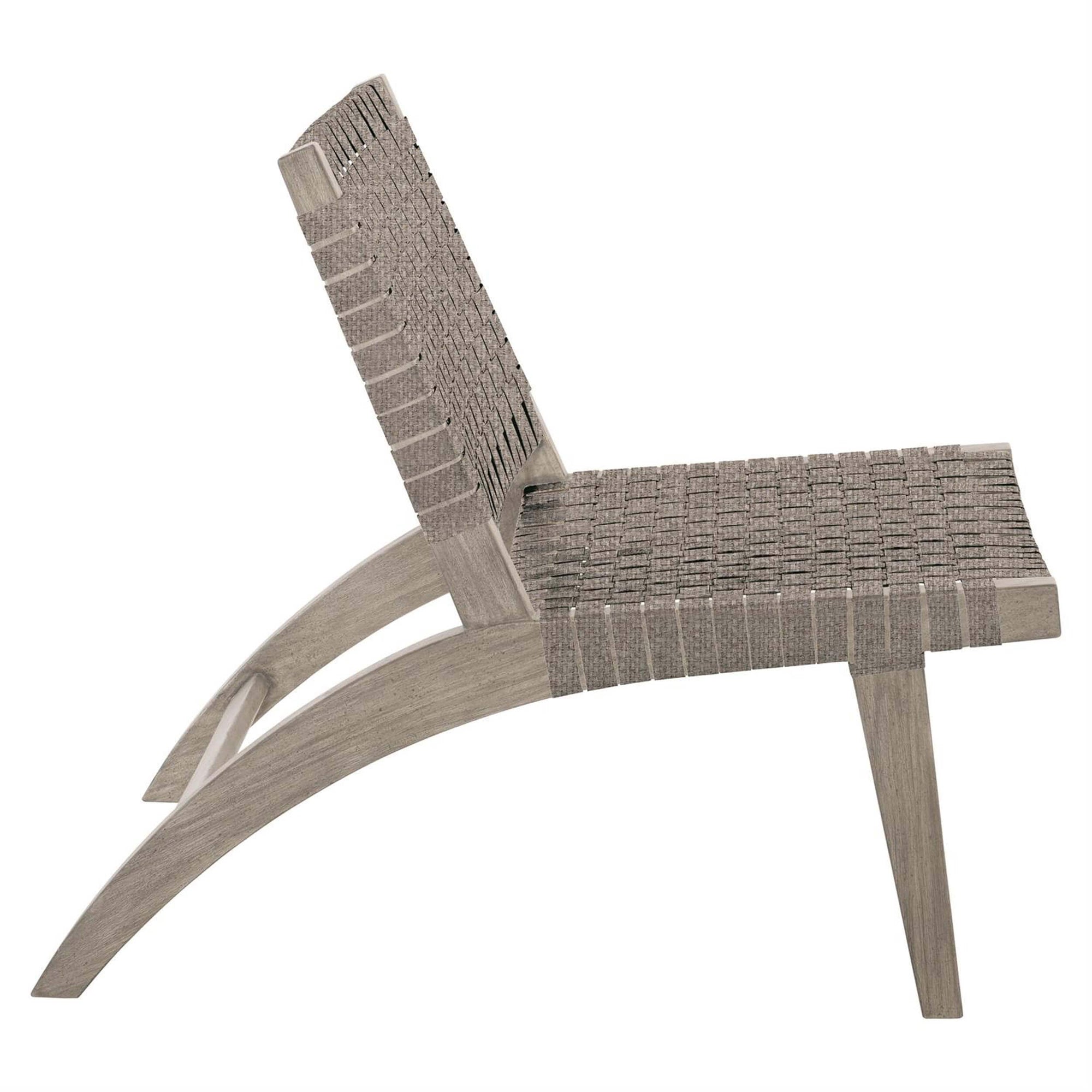 This Playa Outdoor Chair exudes comfort and a relaxed coastal ambiance. Its organic materials and earthy color palette create a natural, laid-back style. The mahogany frame, finished in ash, is complemented by woven textile in a coordinating hue. With arched back legs, this all-weather chair achieves an elegant modern vibe, perfect for unwinding.