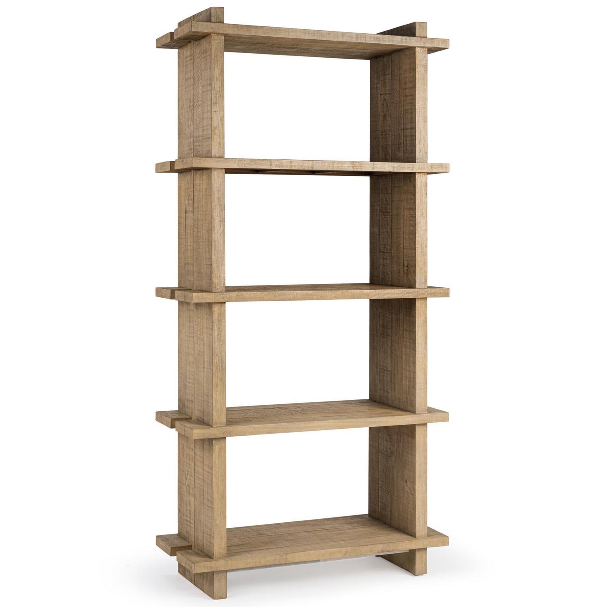 The Karlla Bookshelf brings rustic charm and architectural balance to your home. Crafted from reclaimed wood, its natural texture and warm tones highlight the character of salvaged wood, creating an inviting, organic aesthetic. Featuring spacious open shelving, this solid wood bookcase is a stunning centerpiece for displaying books, art, or décor.