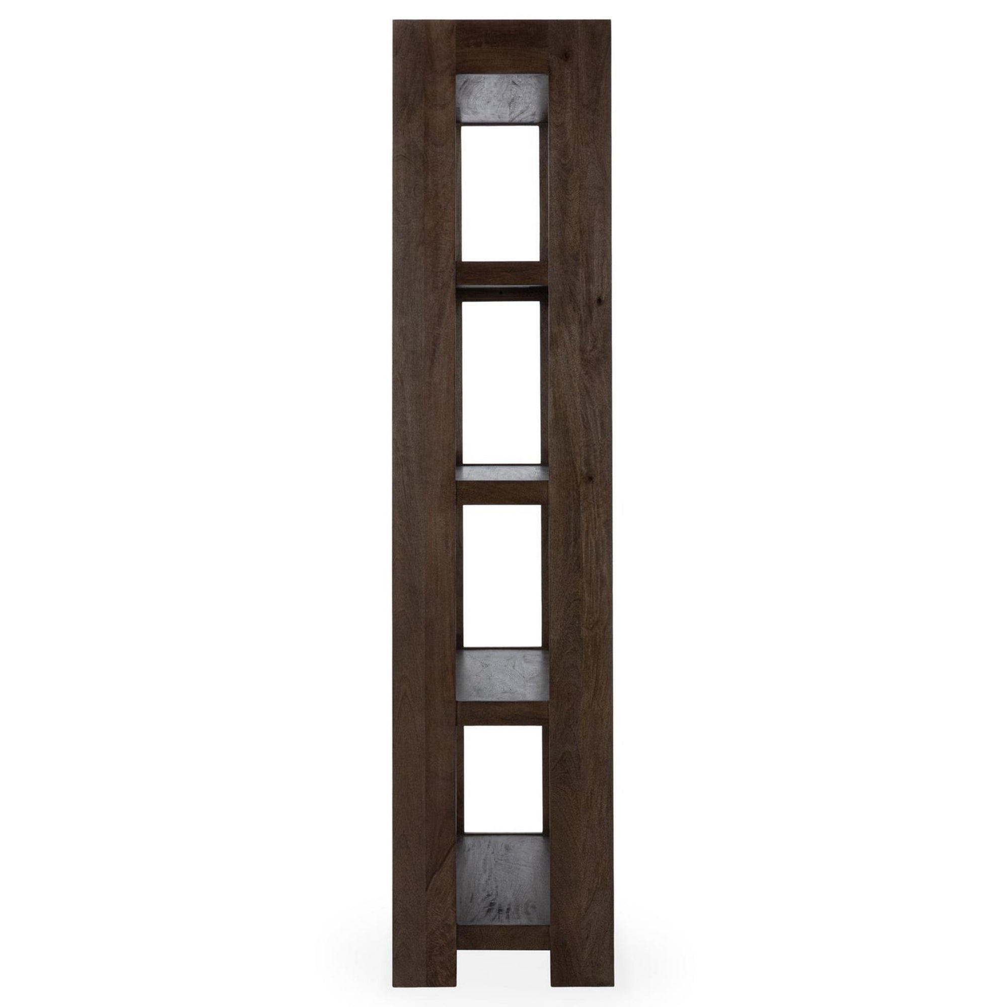 The Marine Bookcase crafted from solid mango wood, brings sculptural presence and timeless character to any room. Its open-frame design and four fixed shelves provide generous space to display books, art, or collectibles. Finished in a rich cocoa brown, this tall bookcase blends natural warmth with a bold, architectural silhouette—perfect for living rooms, offices, or bedrooms.