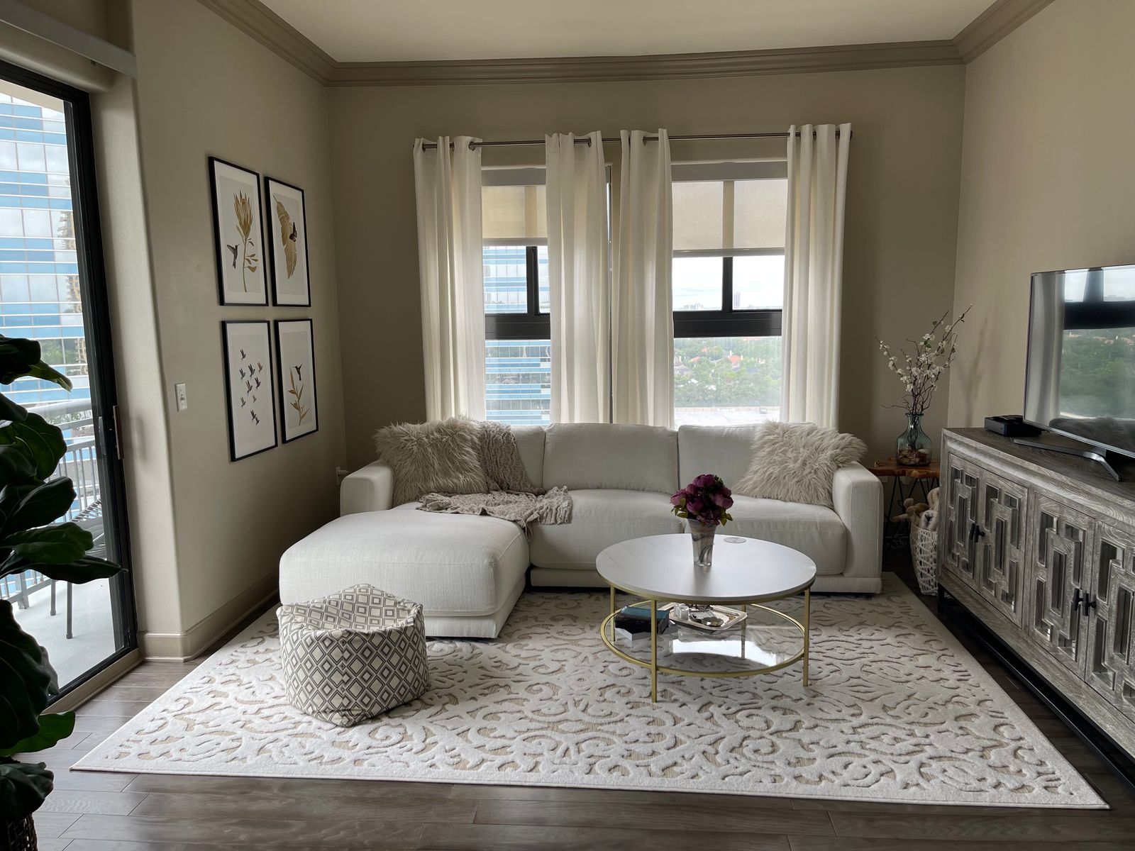 Very happy with this purchase. It is high quality. The wood stain is unique. The glass accents are elegant.