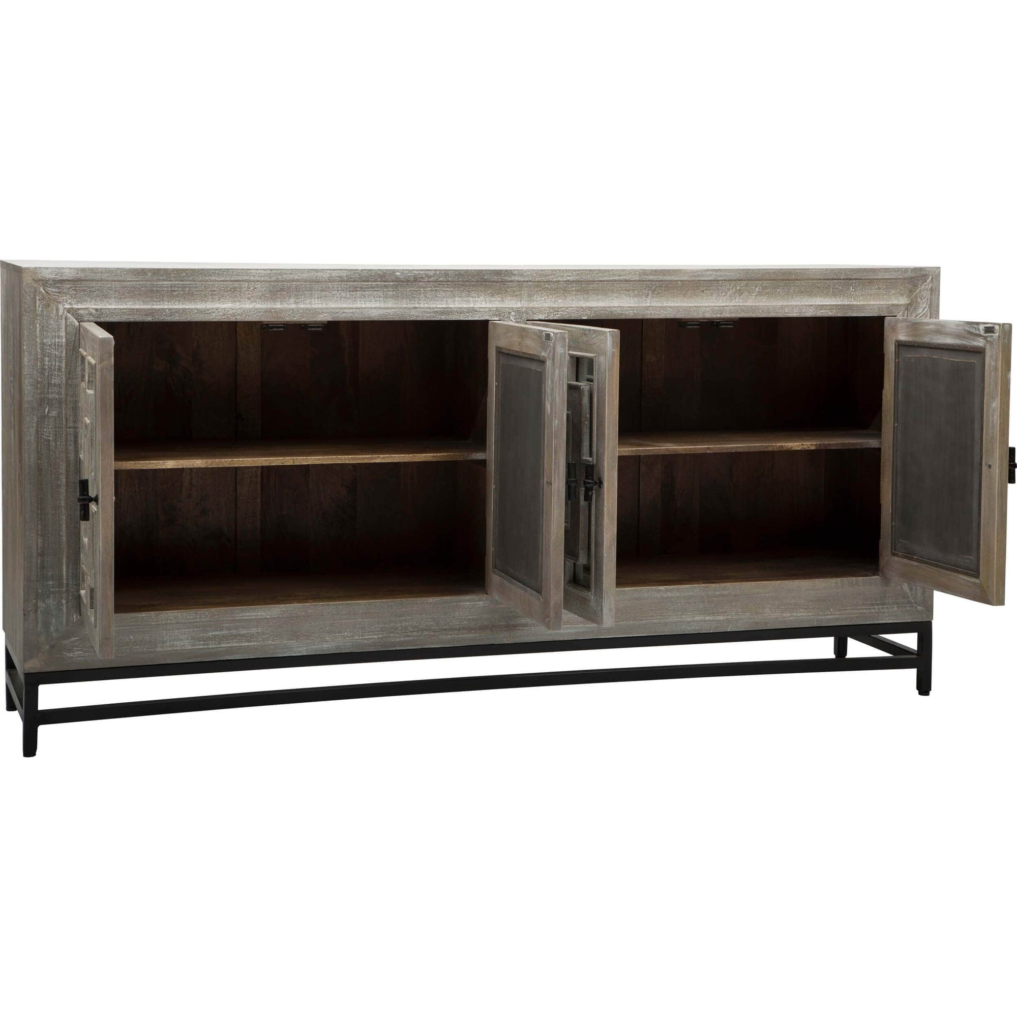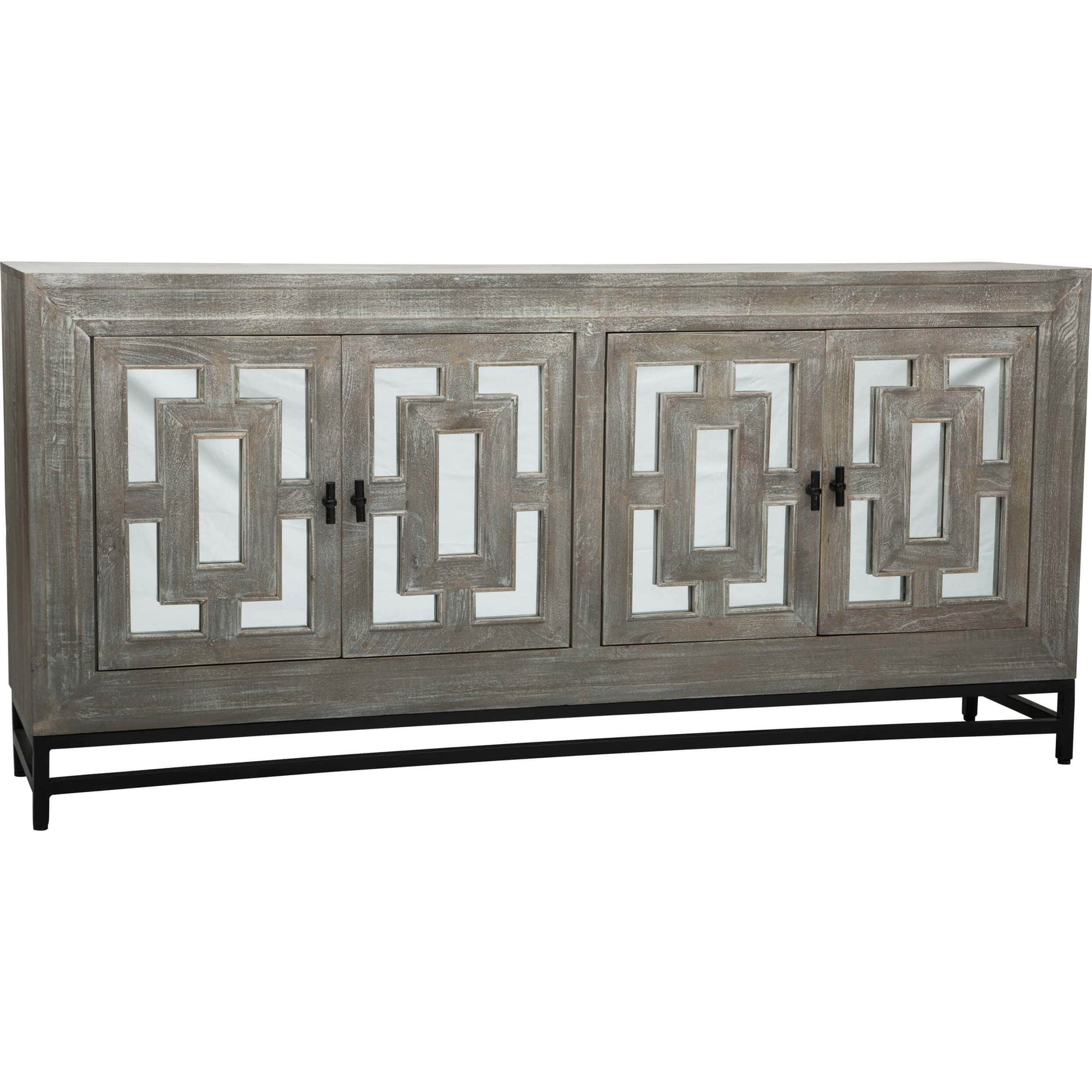 The Artemis Sideboard is made from the tropical Mango Tree that has been hand-finished with an iron base. The mirror and iron accents catch the eye and brighten the room.