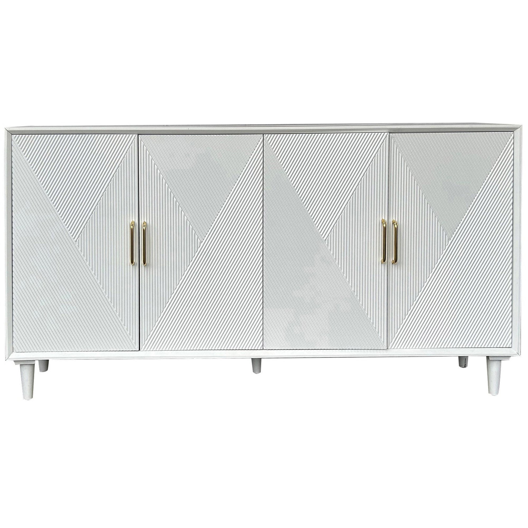 - Four‑door sideboard with carved geometric front panels