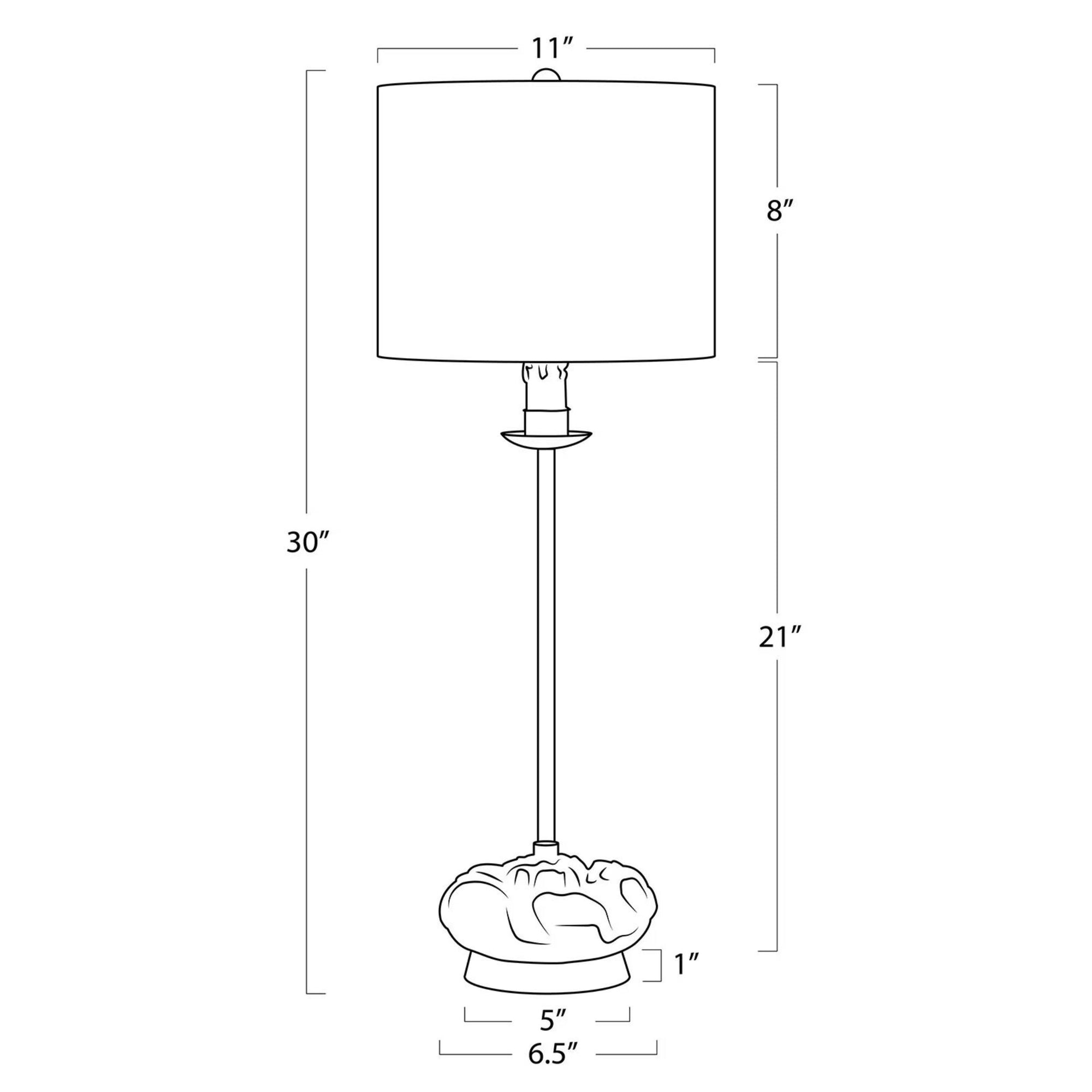 The Dominique Stem Buffet Lamp blends vintage charm with timeless elegance. Its intricately carved base, finished in rich Antique Gold, offers a graceful, classic touch, while the petite circular design adds delicate sophistication. Topped with a crisp white shade, the lamp creates a balanced silhouette that casts a warm, inviting glow. Perfect for accenting buffet tables, sideboards, or console spaces, it enhances both dining areas and living rooms with understated refinement. A versatile accent, the Dominique Lamp brings beauty and sophistication to any setting.