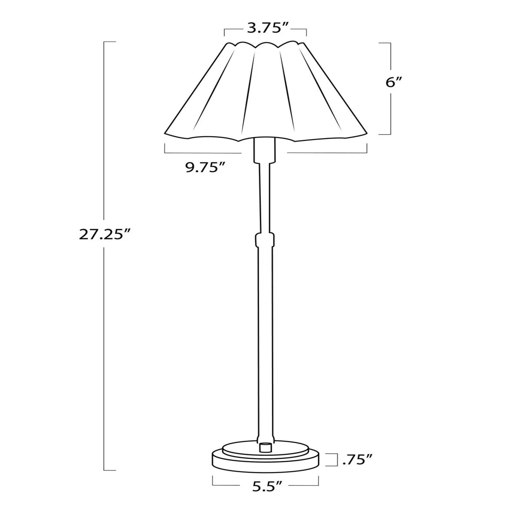 The Polly Buffet Lamp brings refined elegance to any space with its timeless design. Topped with a single white scalloped shade, it casts a warm, inviting glow that enhances the atmosphere of dining rooms, side tables, or entryways. Its gracefully designed base blends classic charm with a modern sensibility, creating a versatile piece that complements both traditional and contemporary interiors. Crisp, clean, and stylish, the Polly Buffet Lamp serves as both a functional light source and a sophisticated accent, elevating your décor with subtle charm.