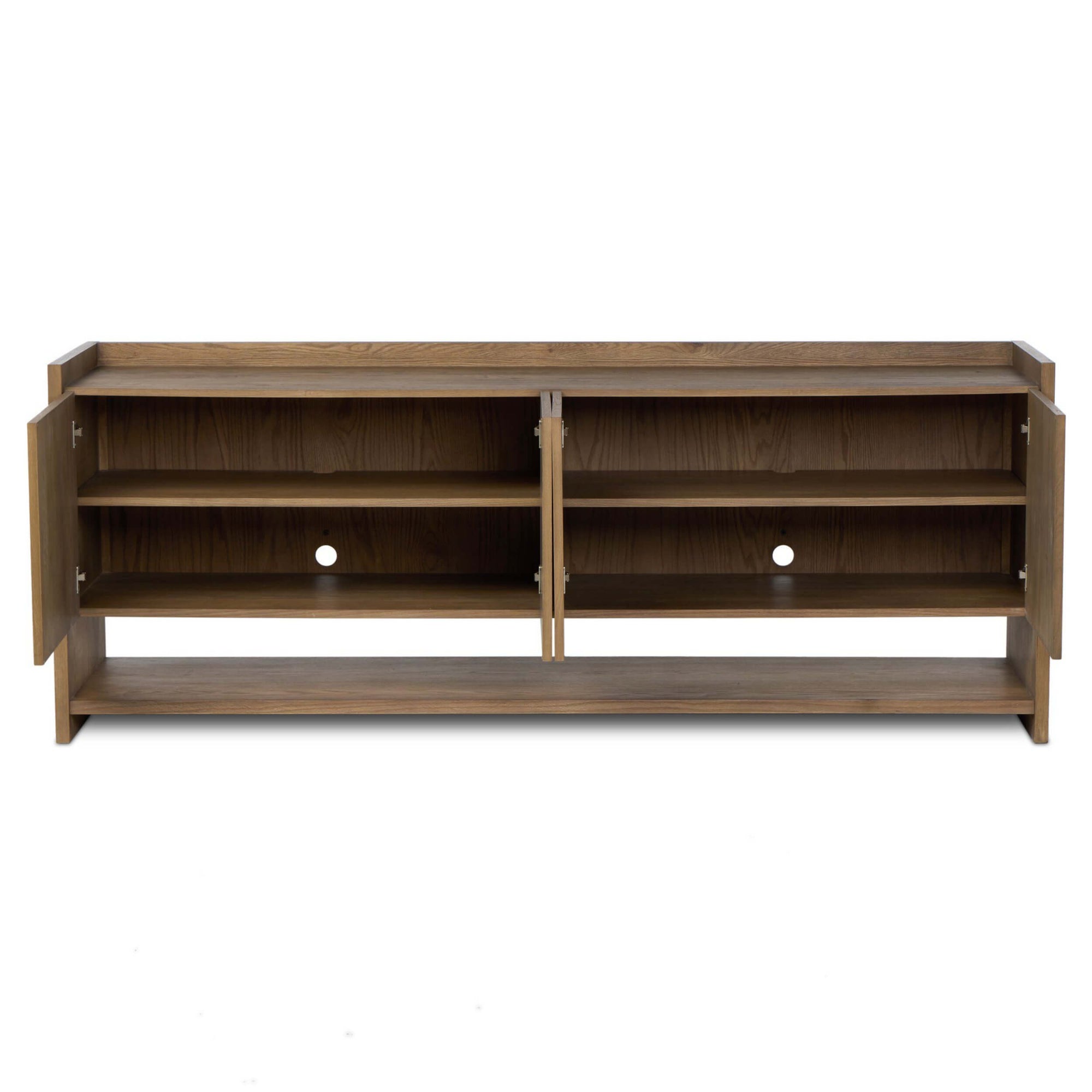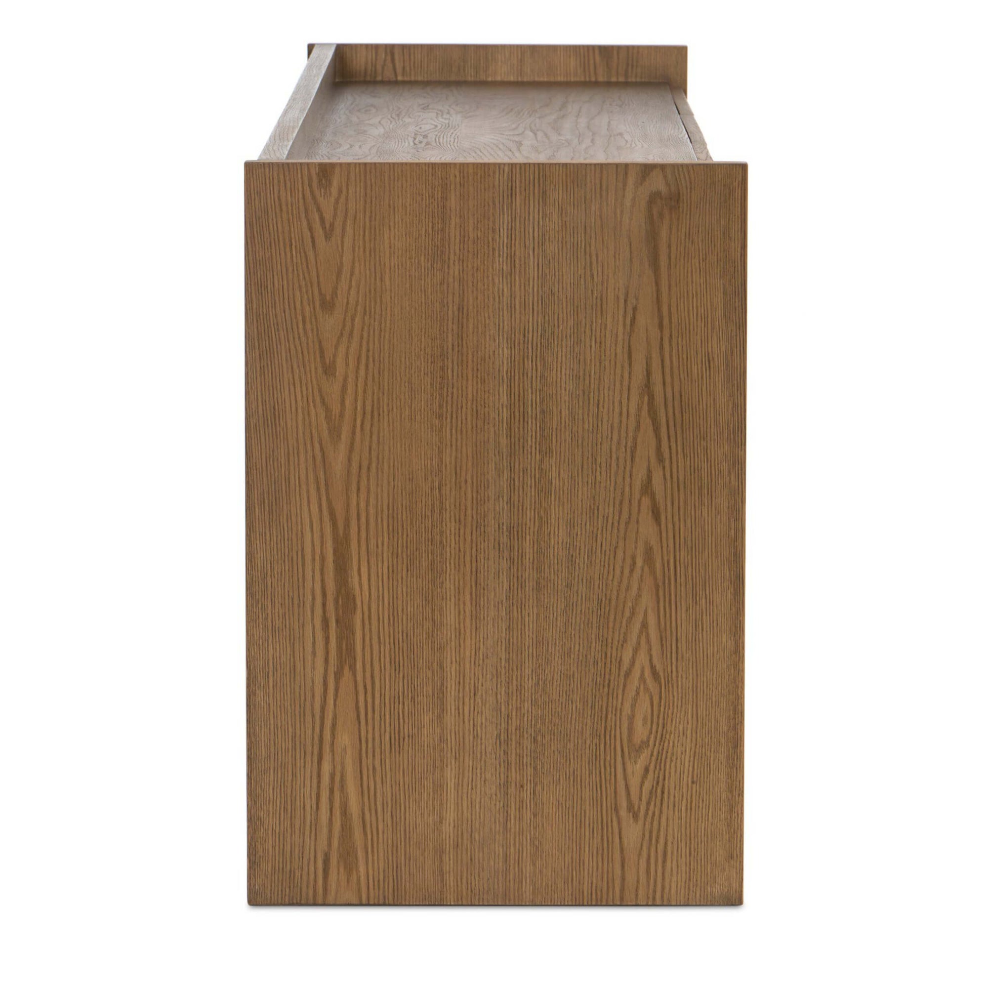 The Rosalina Sideboard combines natural warmth with clean, functional design. Crafted from resawn warm oak, its simple paneled frame showcases striking striations that highlight the wood’s organic character. A refined gallery top adds a subtle architectural detail, while the open bottom shelf offers additional storage or display space. With its balanced proportions and timeless appeal, the Rosalina Sideboard brings both beauty and practicality to dining areas, living spaces, or entryways.