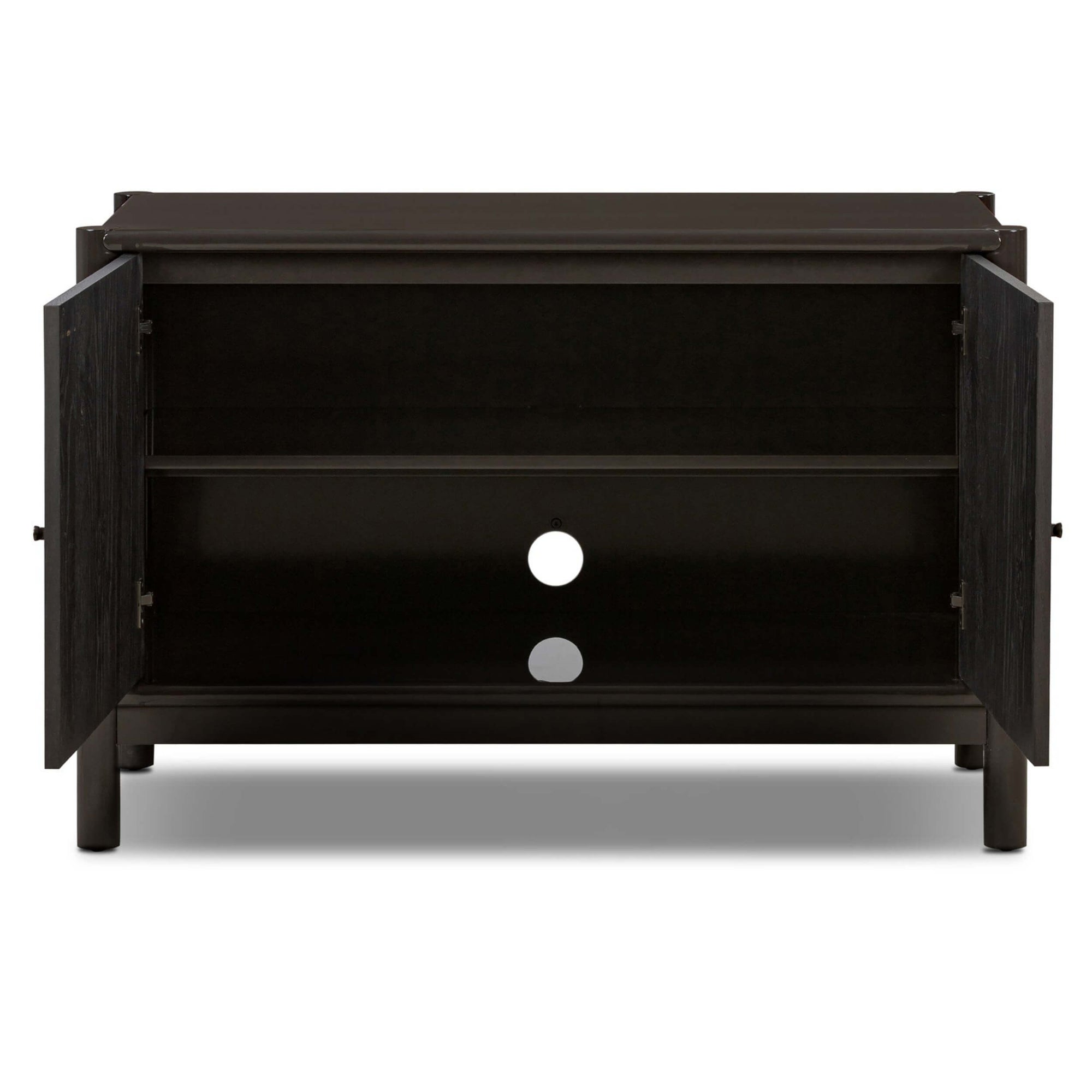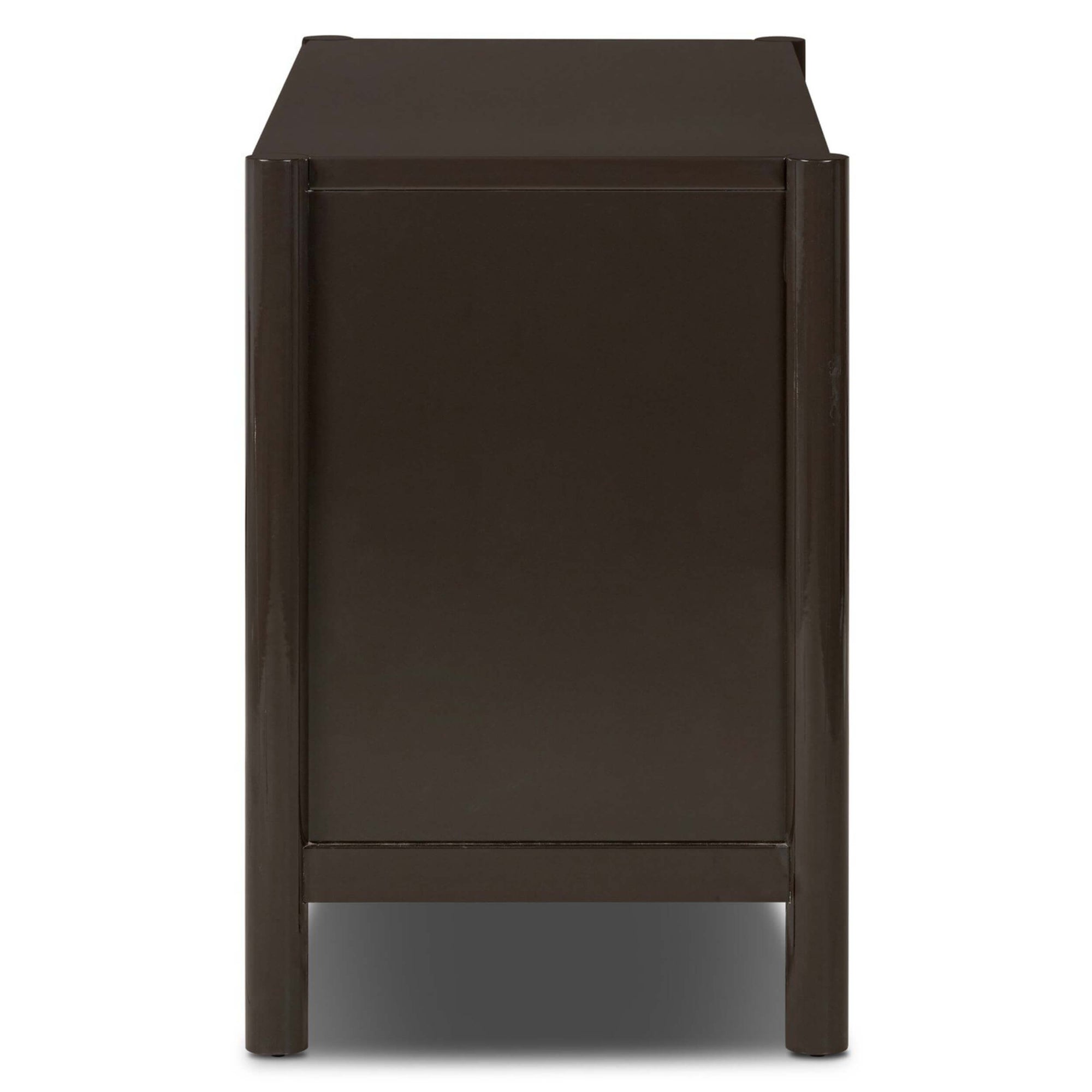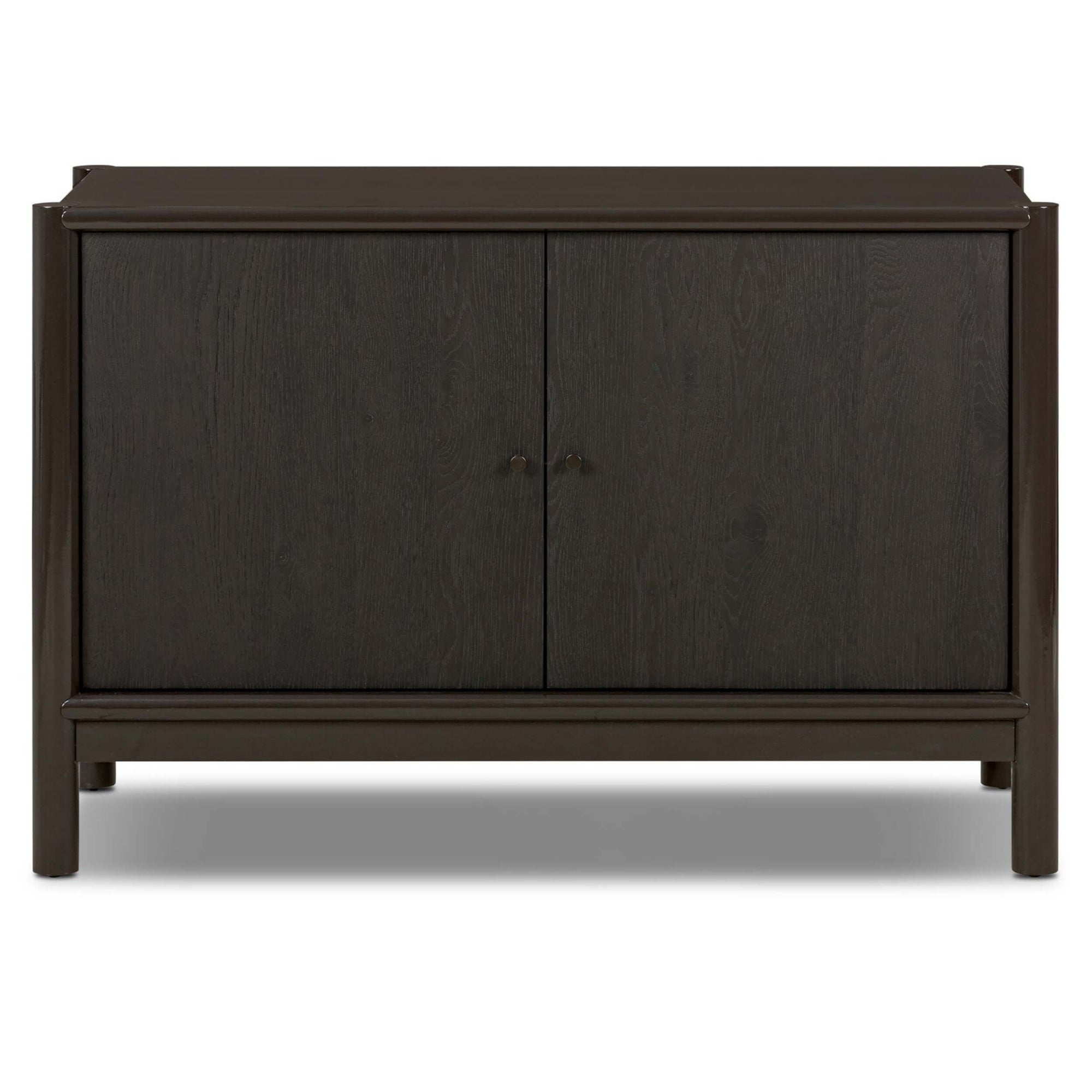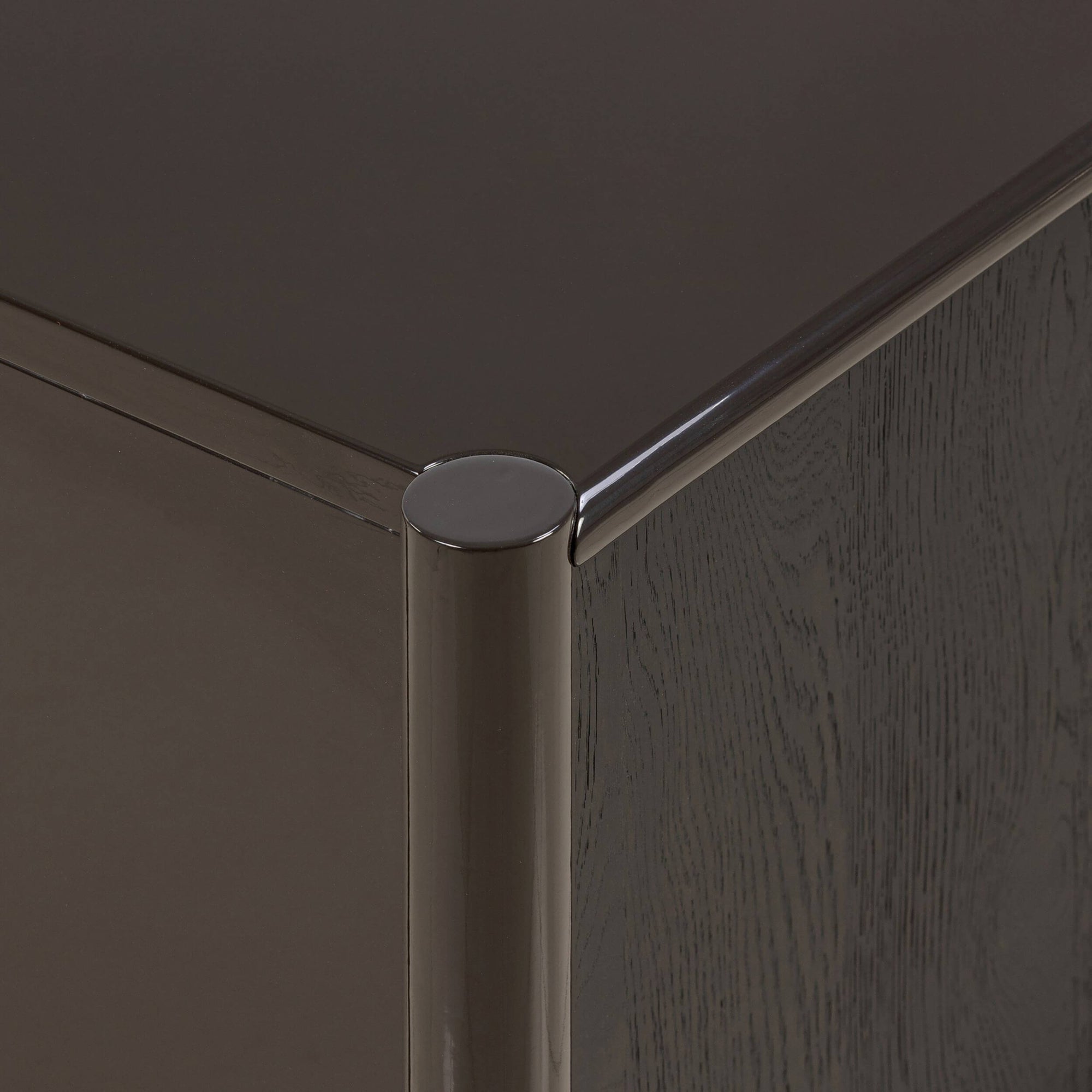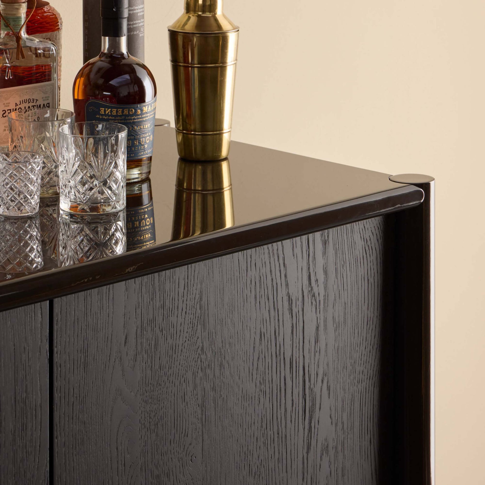 The Vinco Sideboard pairs sleek sophistication with grounded warmth. Lacquered cabinets deliver an enduring glossy finish, bringing a touch of modern elegance to any space. Ideal for smaller rooms, its compact design offers ample storage with interior shelves to keep essentials organized. Worn black oak doors provide a striking contrast, adding texture and depth to the polished surface. Perfect for dining, living, or entryway use, the Vinco Sideboard combines style and function in a versatile, space-conscious piece.