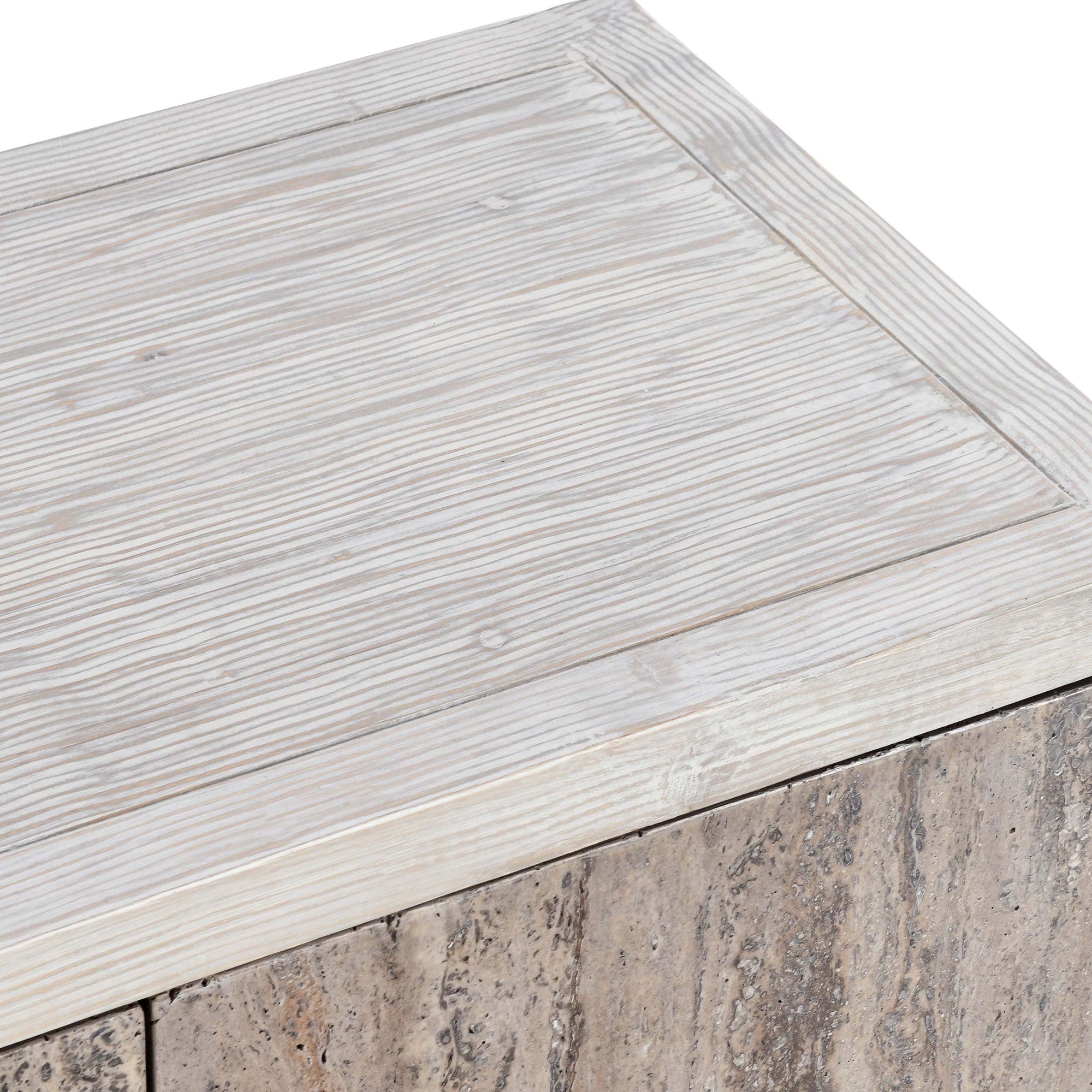 Material Detail | Reclaimed Pine, Travertine, Iron |