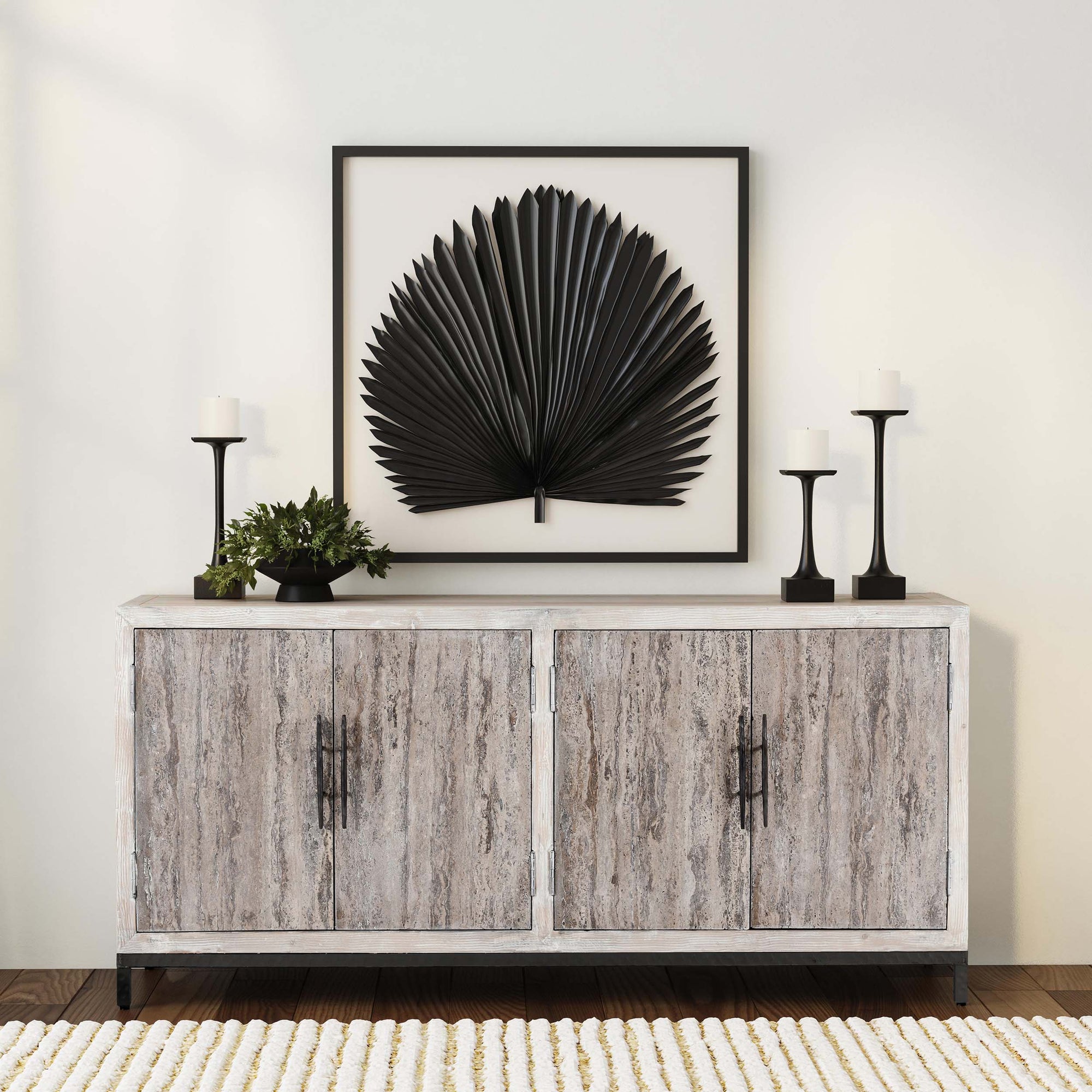 The Lisbon 4 Door Cabinet offers a rustic yet refined look for any space. Crafted from reclaimed pine with Travertine accents and iron hardware, this cabinet showcases the wood’s natural character while providing practical storage. Its elegant design brings both style and functionality, enhancing the ambiance of your home.
