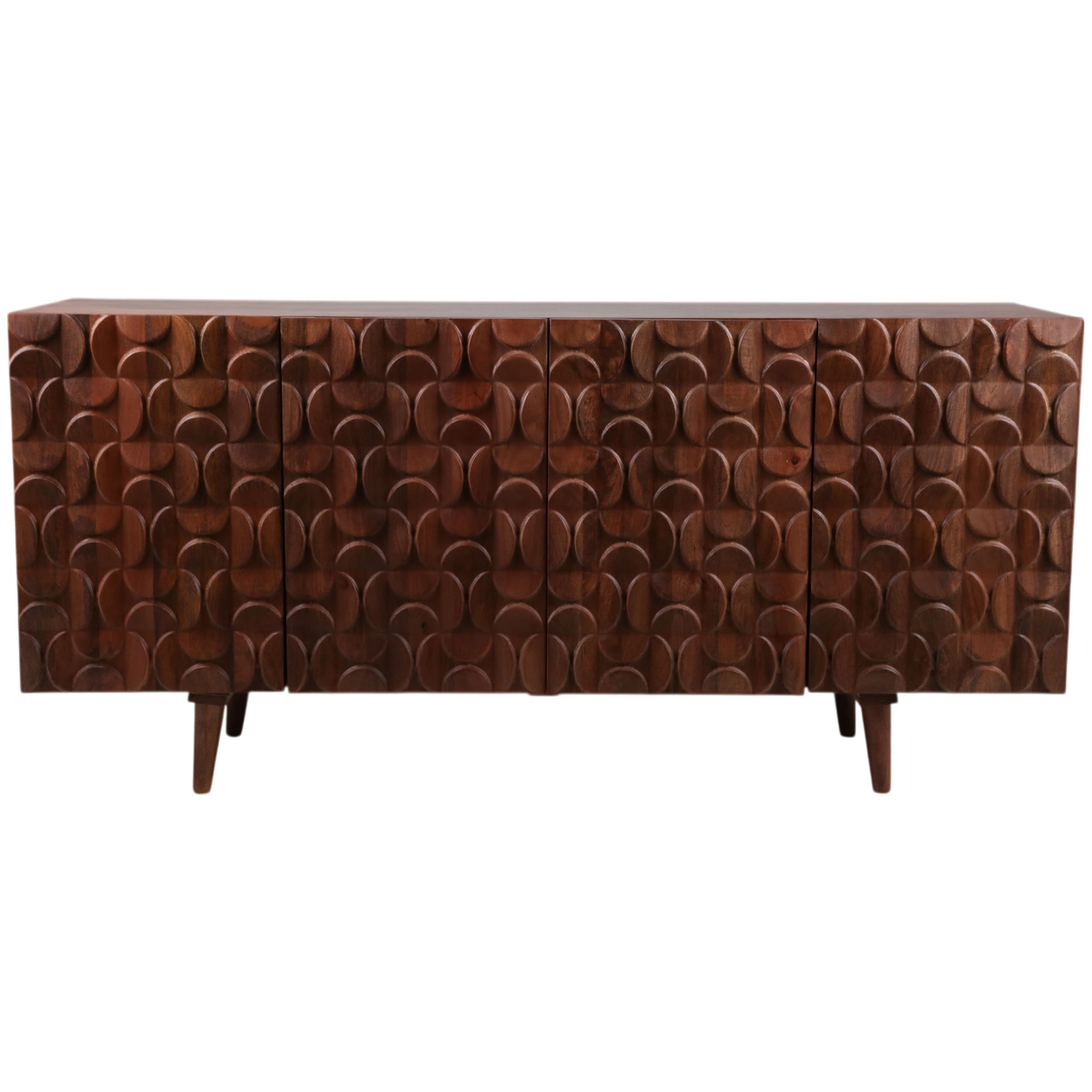 The Mod Front Cabinet brings modern artistry and timeless craftsmanship into your home. Expertly crafted from durable mango wood, this piece showcases a rich brown finish that enhances its natural warmth and versatility. The standout feature is its finely carved geometric detailing on the doors, offering bold texture and a striking visual element that elevates any space. Both functional and stylish, the cabinet provides ample storage for everyday essentials while serving as a captivating focal point in living rooms, dining areas, or entryways. Perfect for those who appreciate design with character, the Mod Front Cabinet blends durability, elegance, and contemporary flair in one stunning piece.