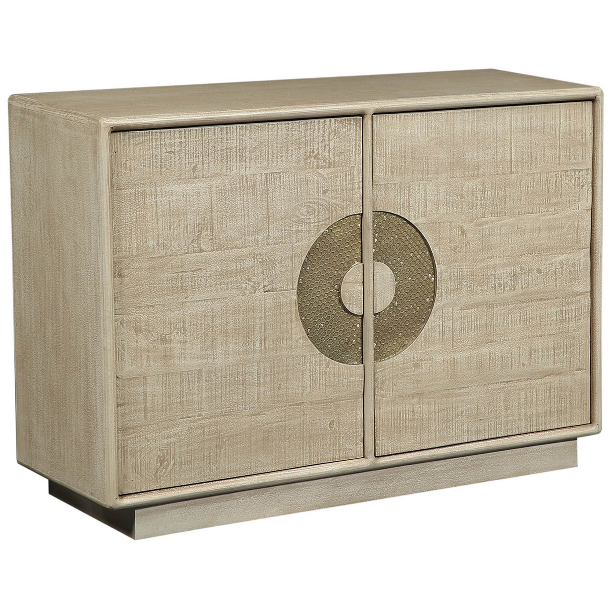 The Westhaven Cabinet offers streamlined storage with a warm, natural finish. Designed to complement transitional interiors, it features a spacious top and versatile concealed storage.