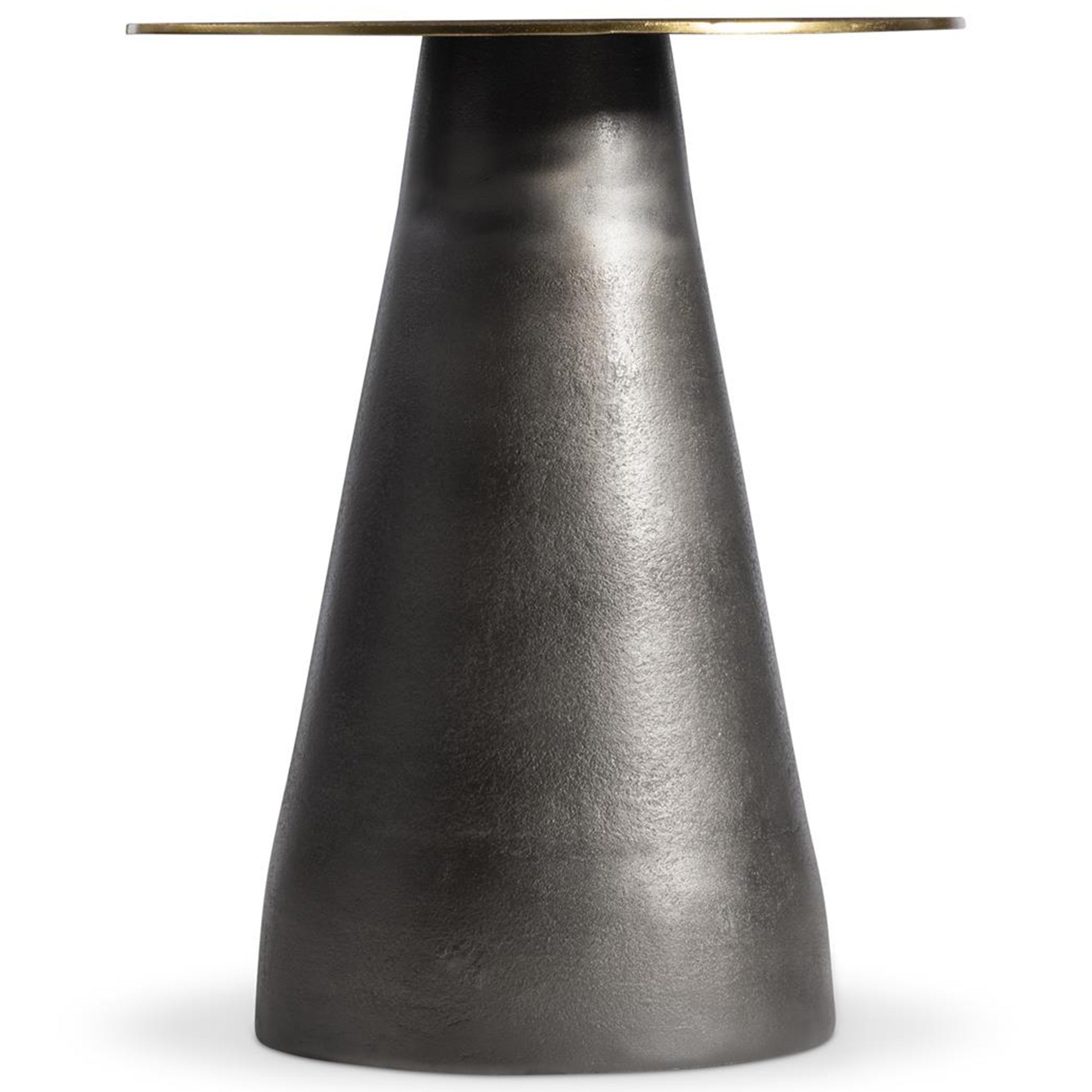 The Alto Accent Table blends sculptural form with modern contrast, pairing a cast aluminum base in Black Nickel finish with a top ring in textured Antique Brass. Its pierced design creates a striking balance of shadow and shine for a statement-making accent piece.