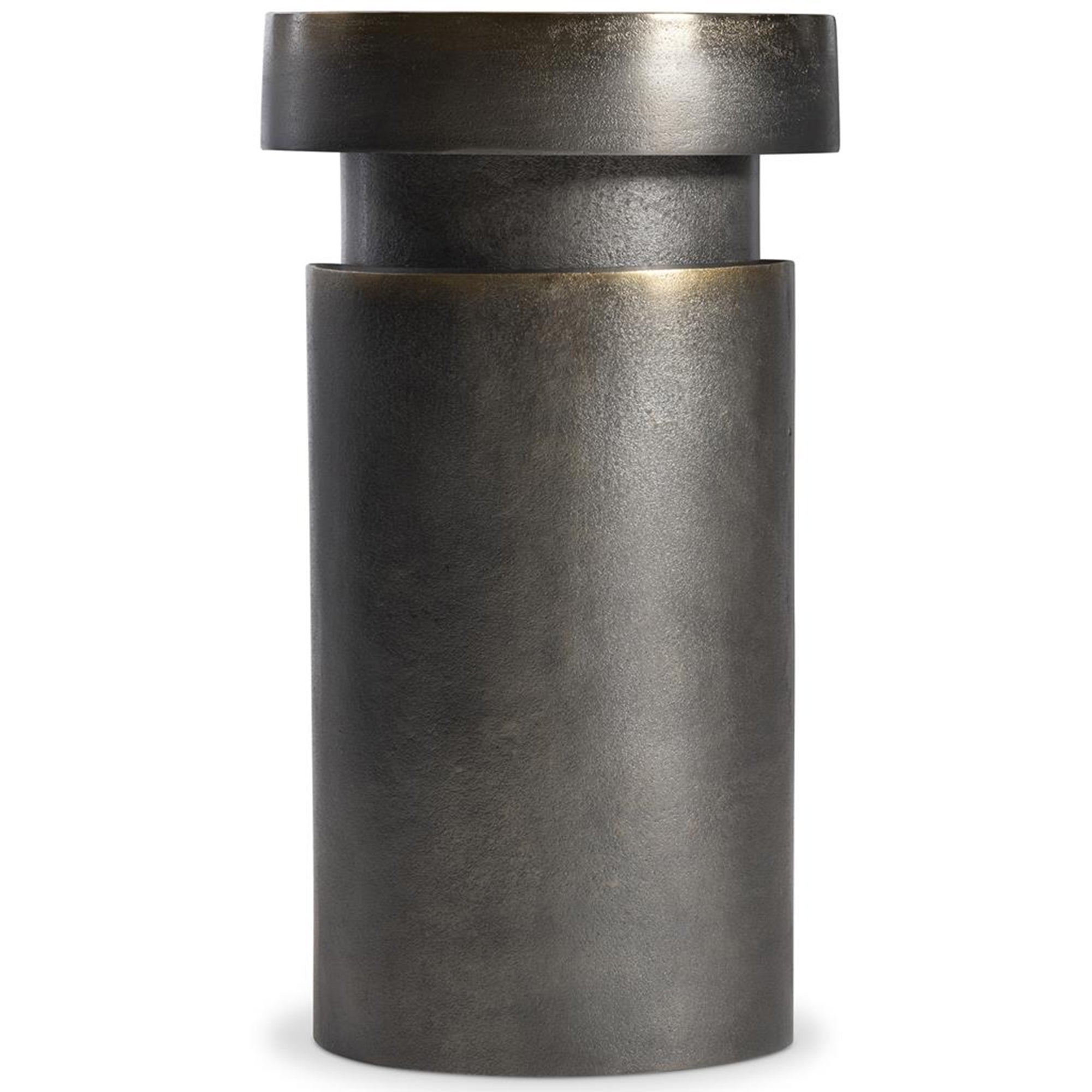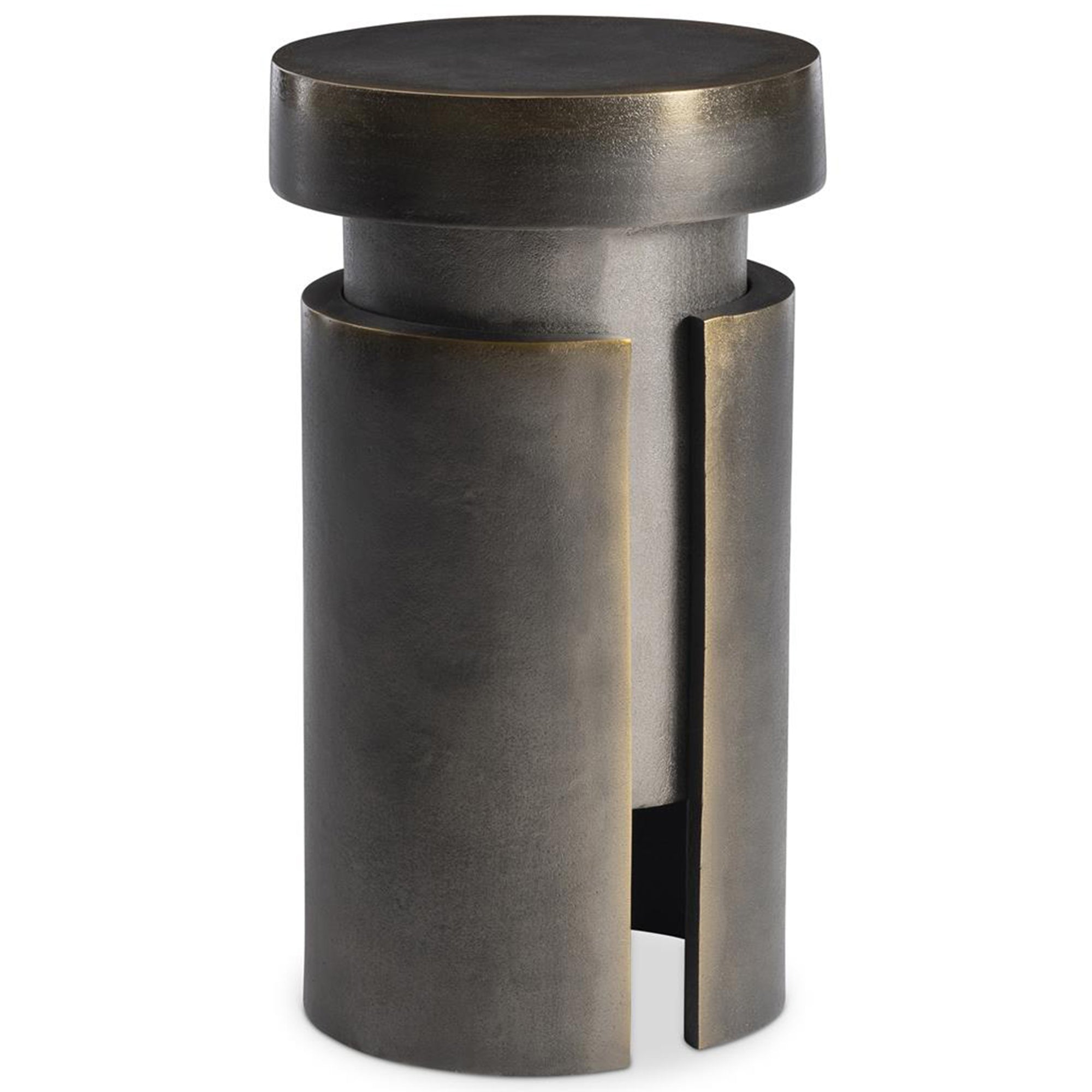The Avi Accent Table blends industrial inspiration with modern sophistication. Modeled after piston mechanics, its cast aluminum inner core rises through a wrapped shell, all finished in textural Blackened Brass. A bold sculptural piece, it adds distinctive character to any space.
