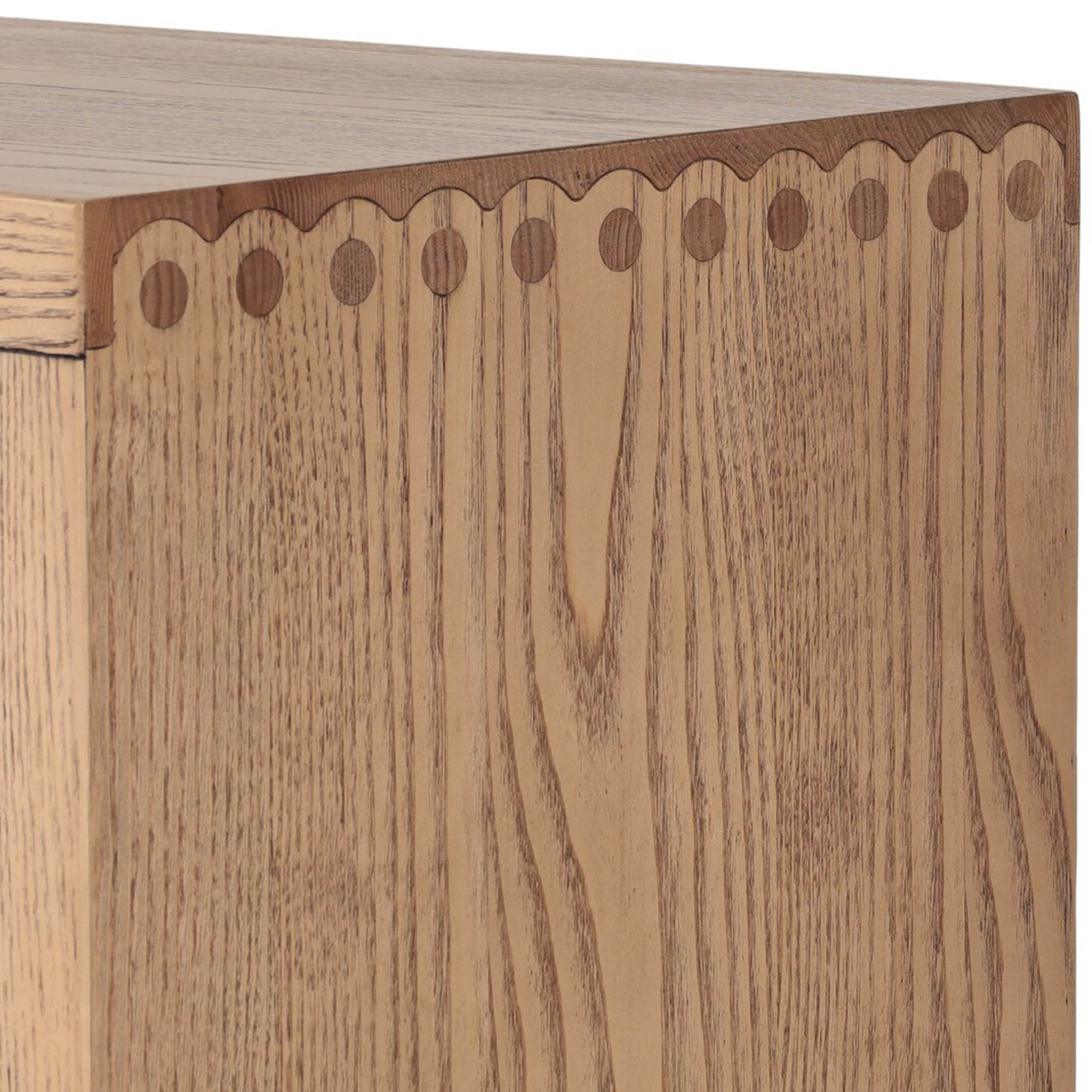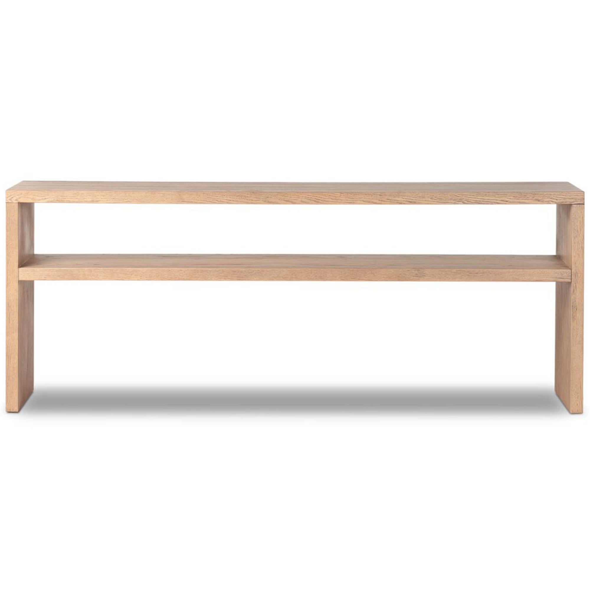 The Hathaway Console Table designed in collaboration with Amber Lewis, features a clean waterfall design that offers endless storage and display options. Crafted from toasted ash with a light, grain-rich finish and accented by scallop edge detailing, this table adds an elevated, artisan-inspired aesthetic to any space.